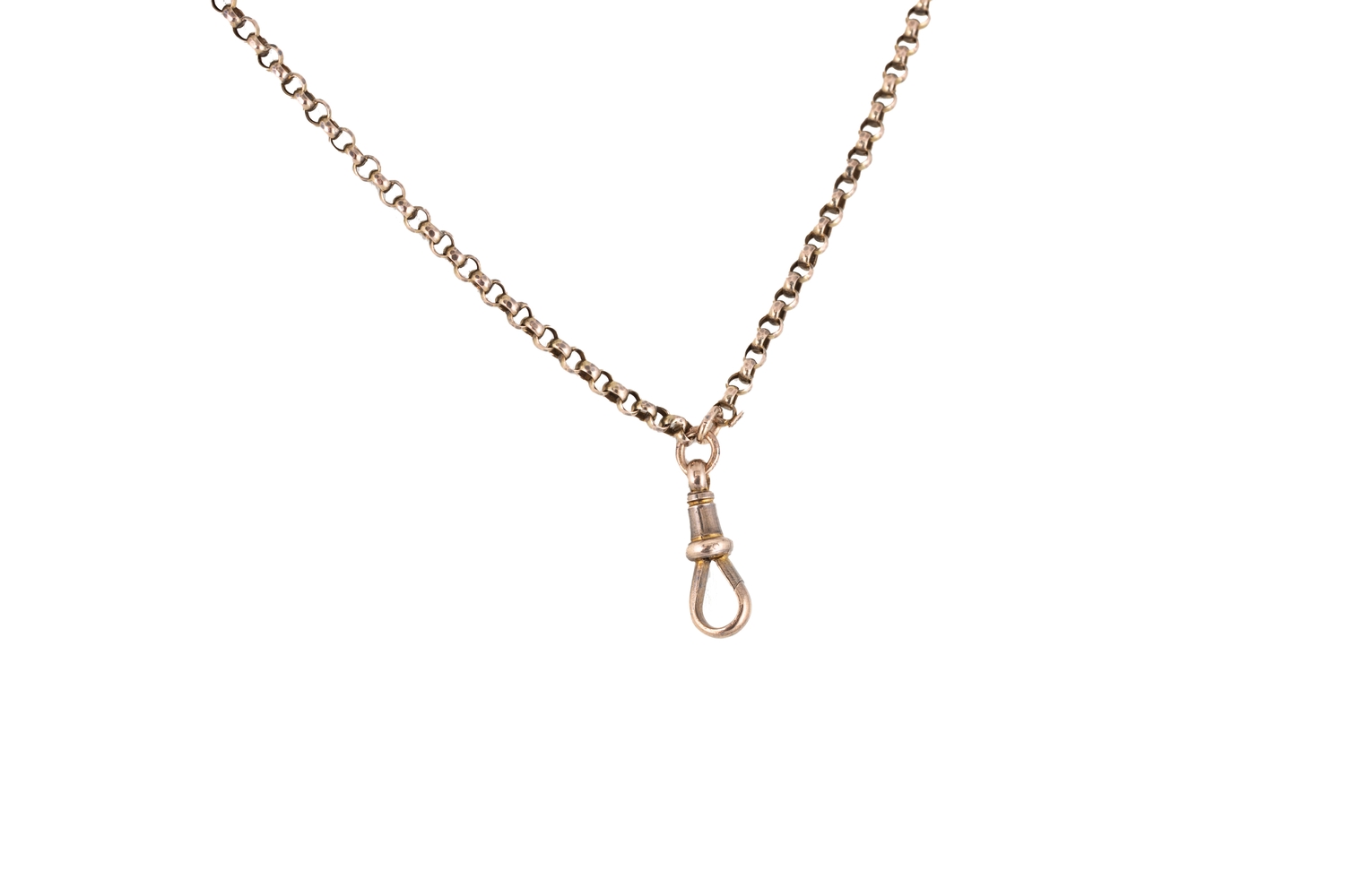 AN ANTIQUE 9CT ROSE GOLD BELCHER LINK MUFF CHAIN, ca 56" long, 18 g.
