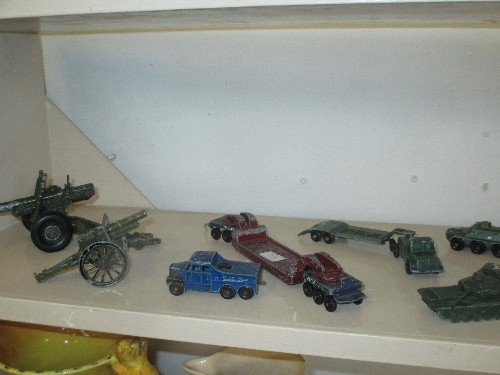 COLLECTION OF VINTAGE LESNEY MATCHBOX MILITARY DIE-CAST VEHICLES INCLUDING 200 T.O. TRANSPORTER CRANE, CENTURION TANK MARK III, CRESCENT TOY COMPANY FIELD GUN ETC