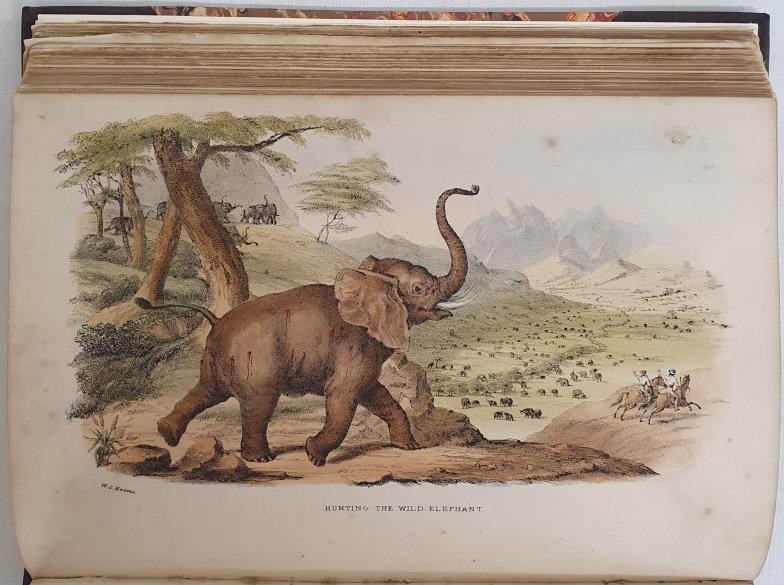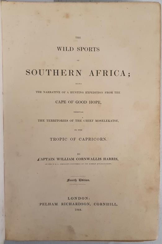 Cpt. William C. Harris. Wild Sports of South Africa. 1844 royal octavo. With 25 coloured lithographs. Later three quarters calf, marbled boards. Rare African plate book.