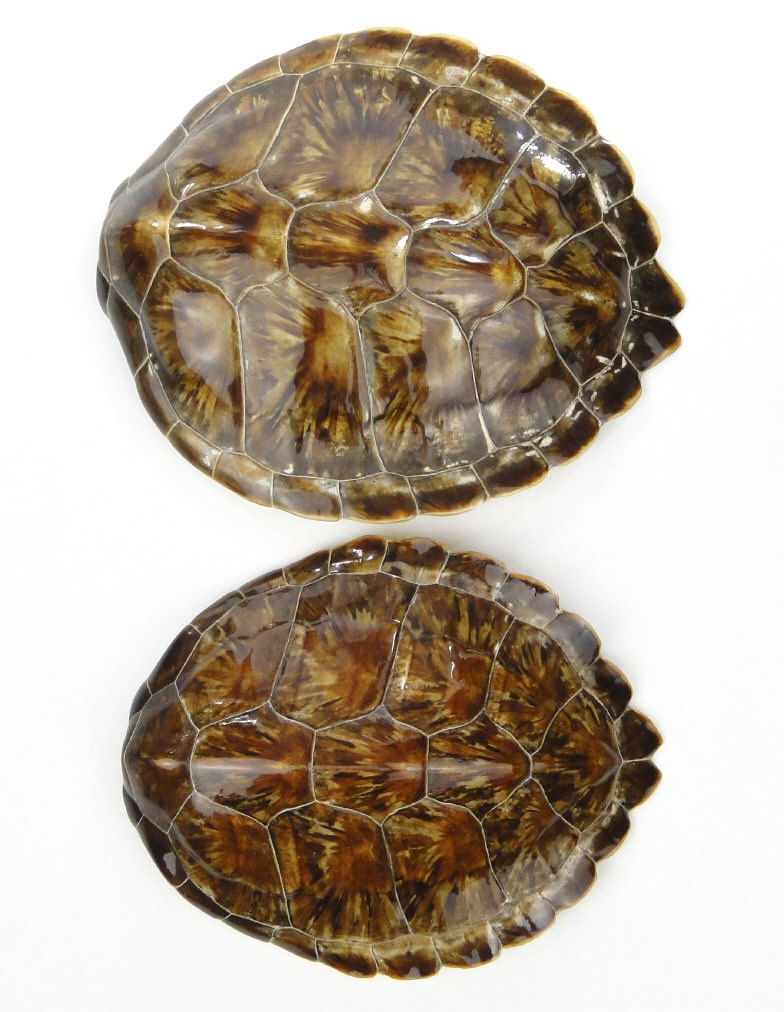 Two taxidermy interest antique turtle shells, the larger 33cm x 30cm
