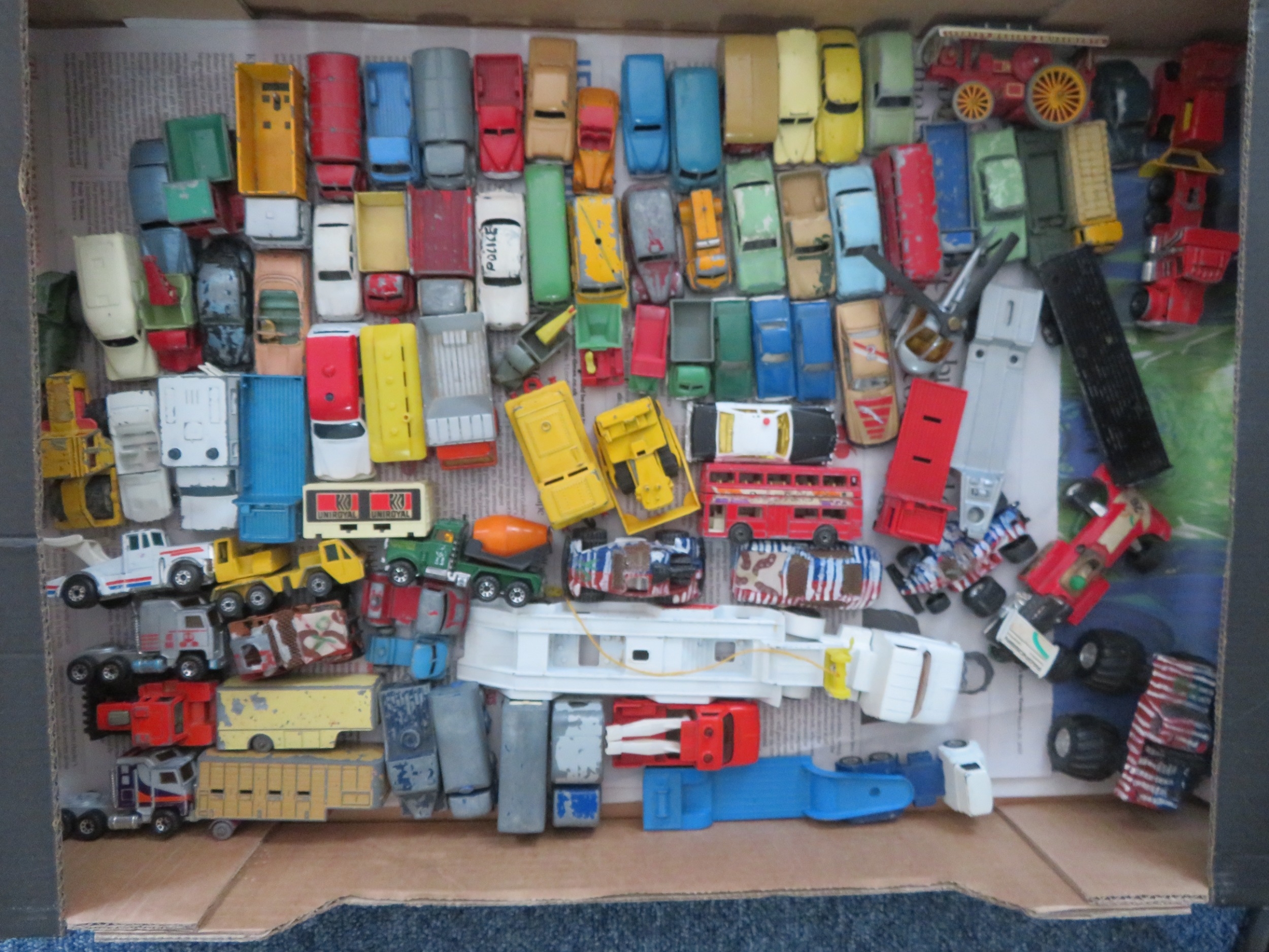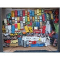 1950s onwards unboxed diecast collection, range of Dublo Dinky, Matchbox 1-75, Corgi Juniors, Minix, etc., generally good plus to fair (some repaints & customisation). Contents unchecked for completeness or correctness and viewing recommended. Qty approx. 50+