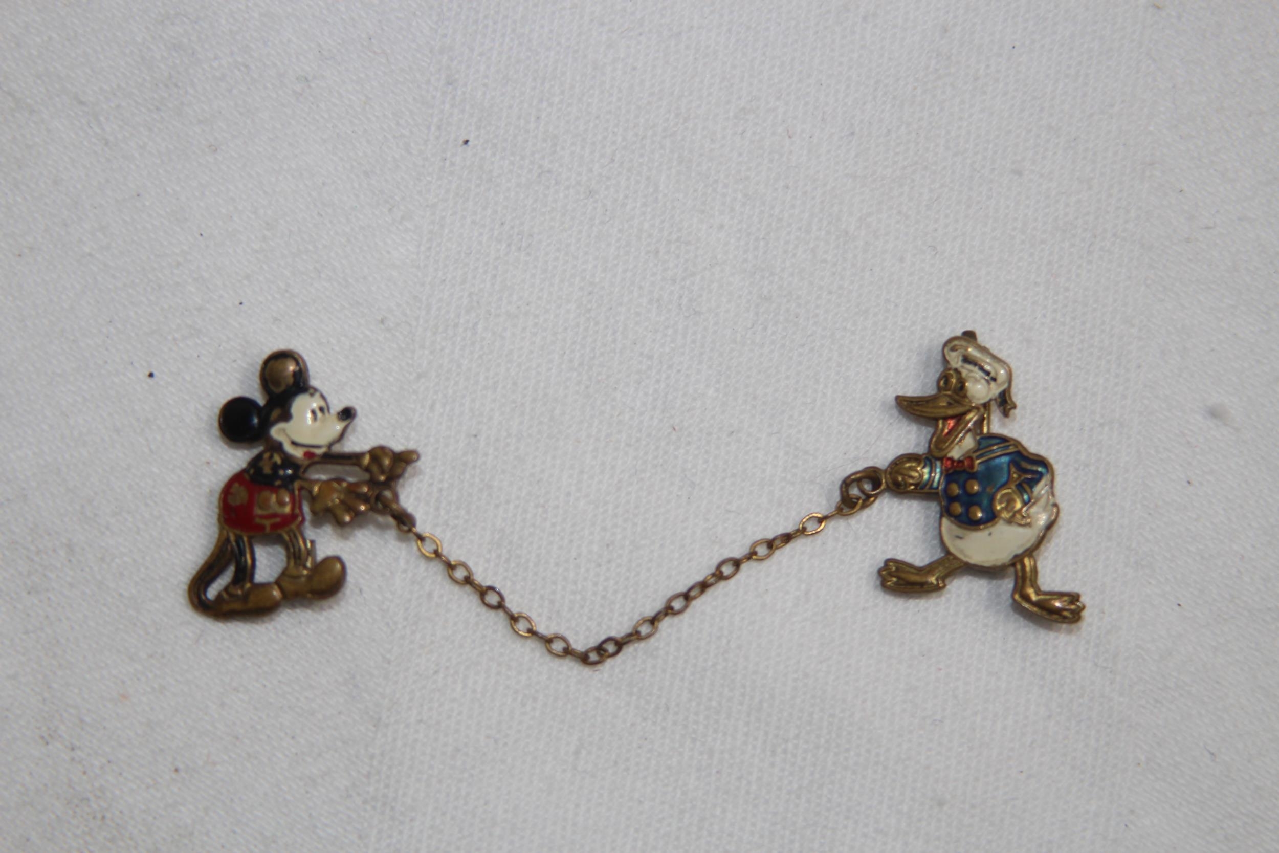 VERY EARLY & RARE DISNEY ENAMEL BADGE DUO OF MICKEY MOUSE AND DONALD DUCK, MARKED WITH EARLY WD MARK