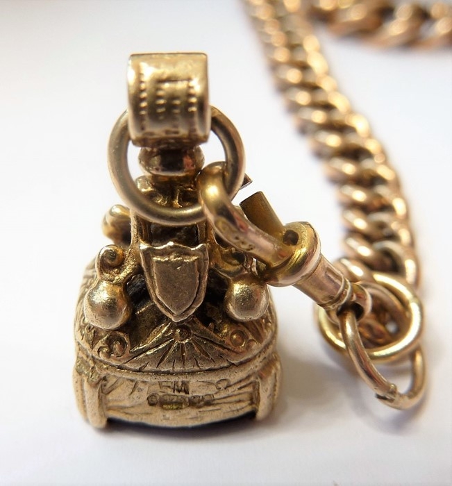 A Victorian 9-carat rose-gold double albert and fob