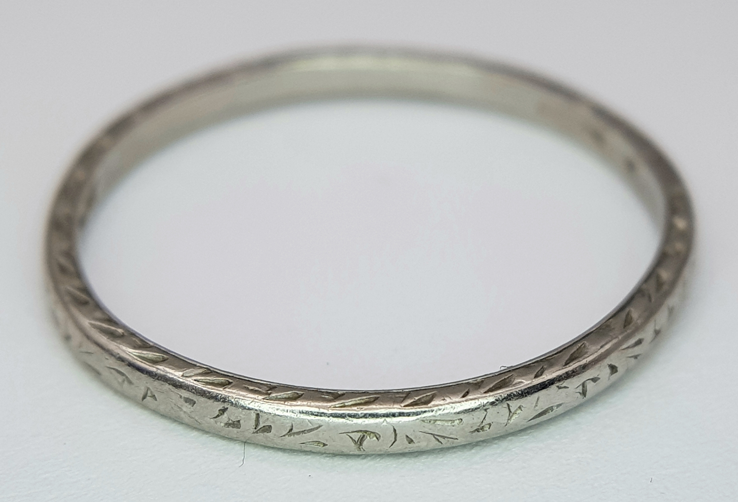 A Vintage Platinum Band Ring. 3mm width. Size P 1/2. 2.3g.