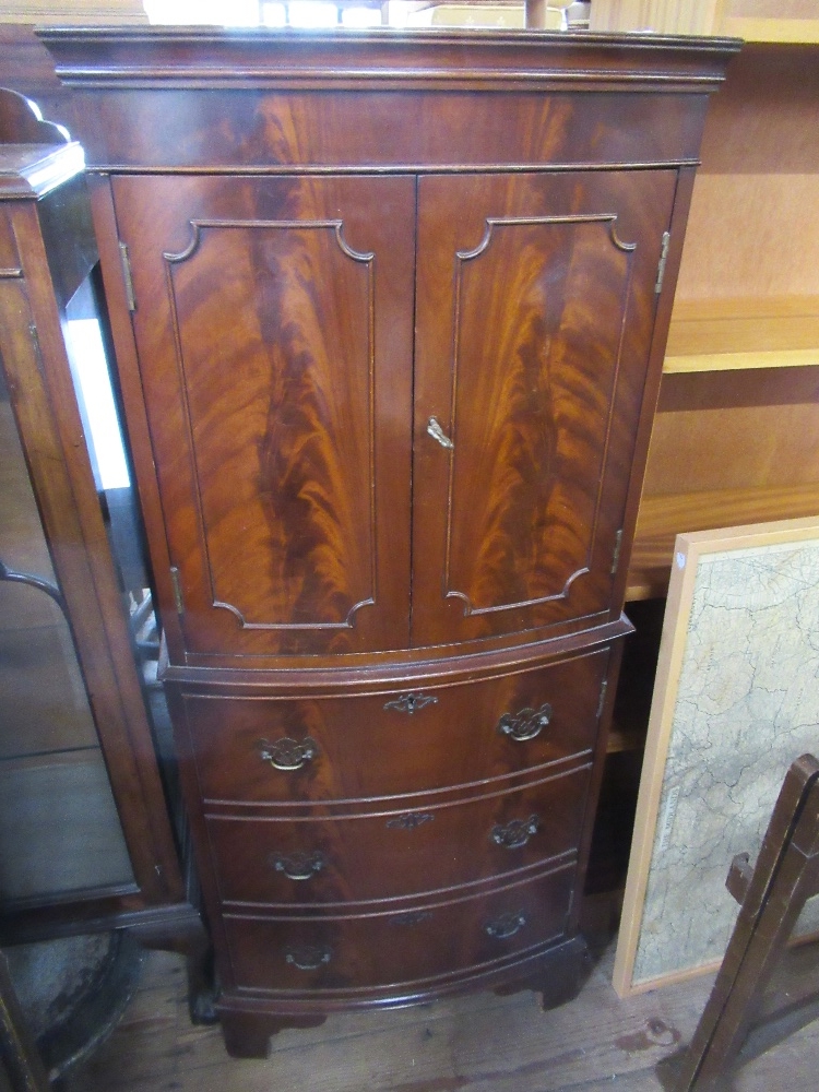 A reproduction mahogany tall boy, width 22ins, height 53ins
