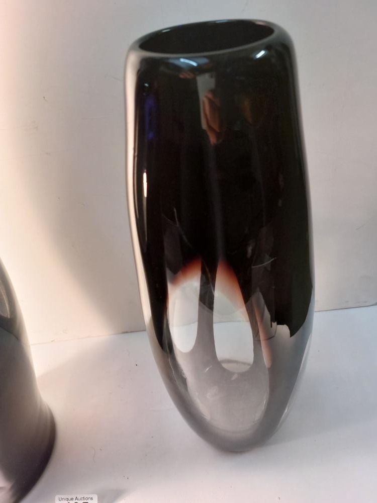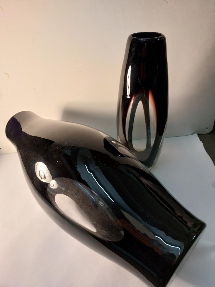 2 Rare vintage black Murano vases