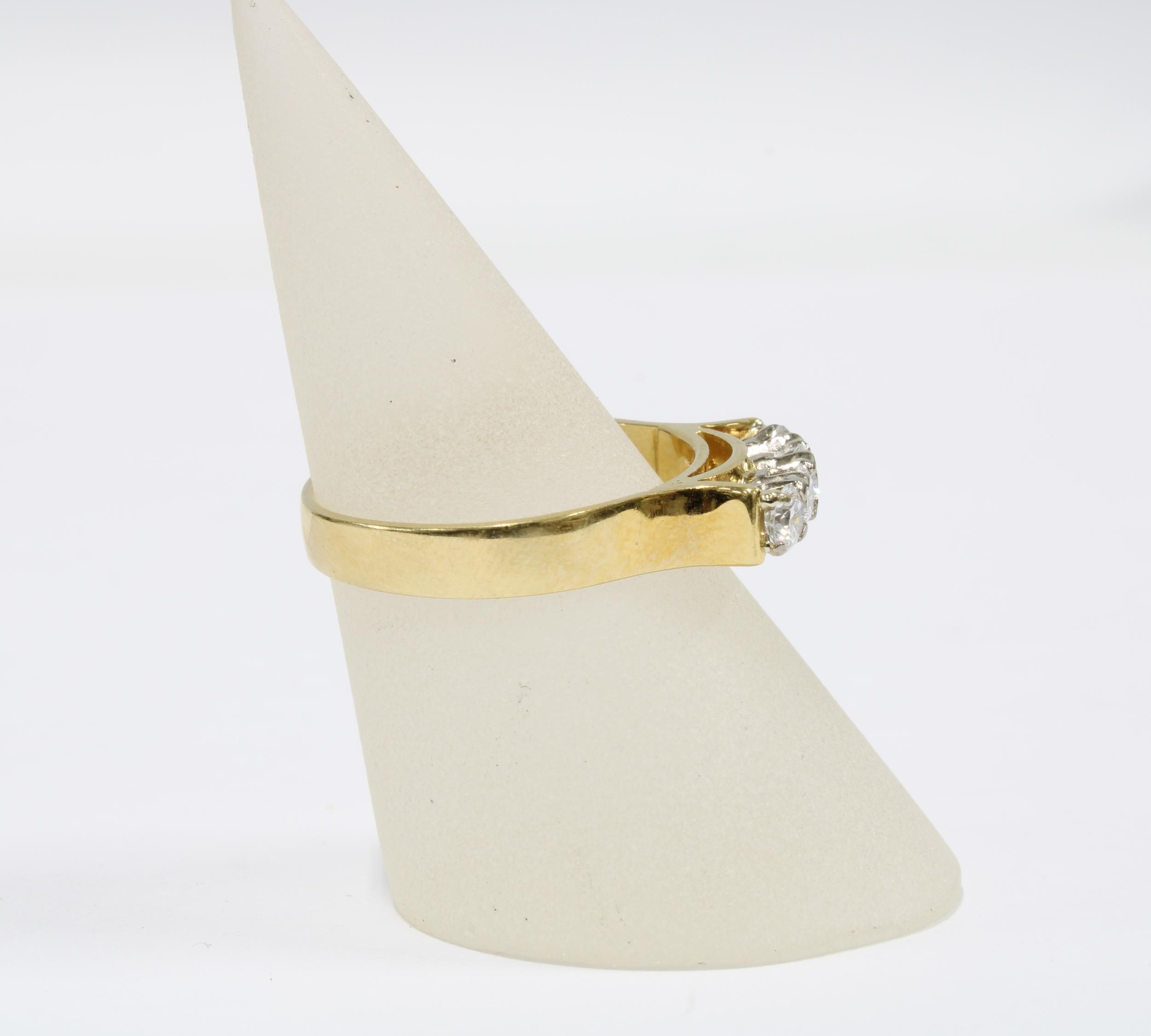 9ct gold dress ring claw set with a row of four brilliant cut diamonds, stamped 18ct, size P1/2