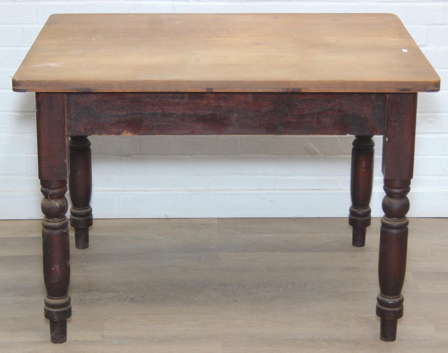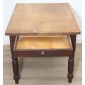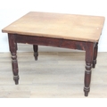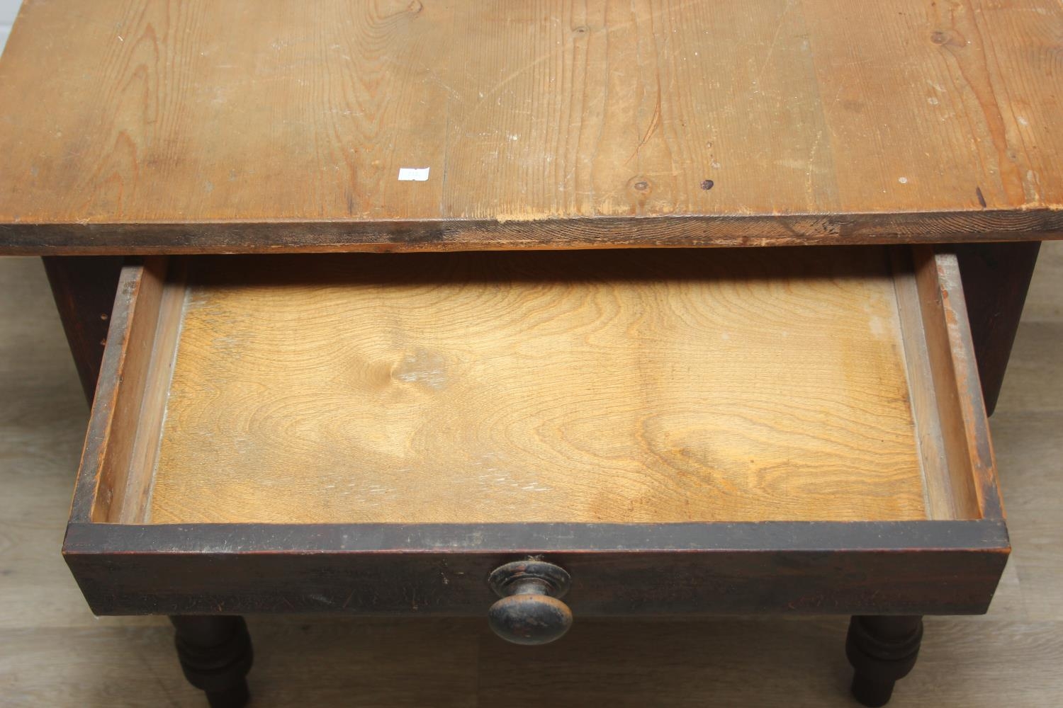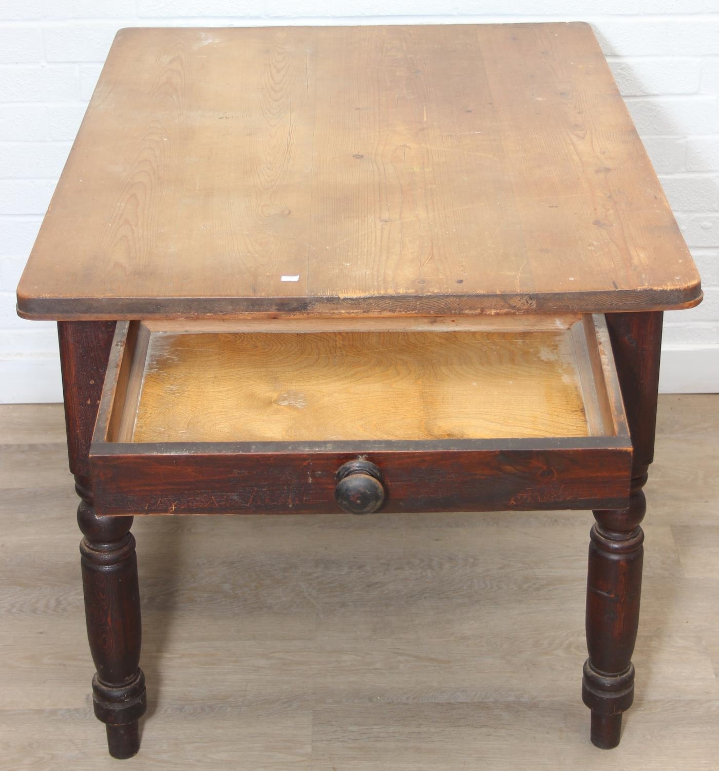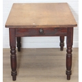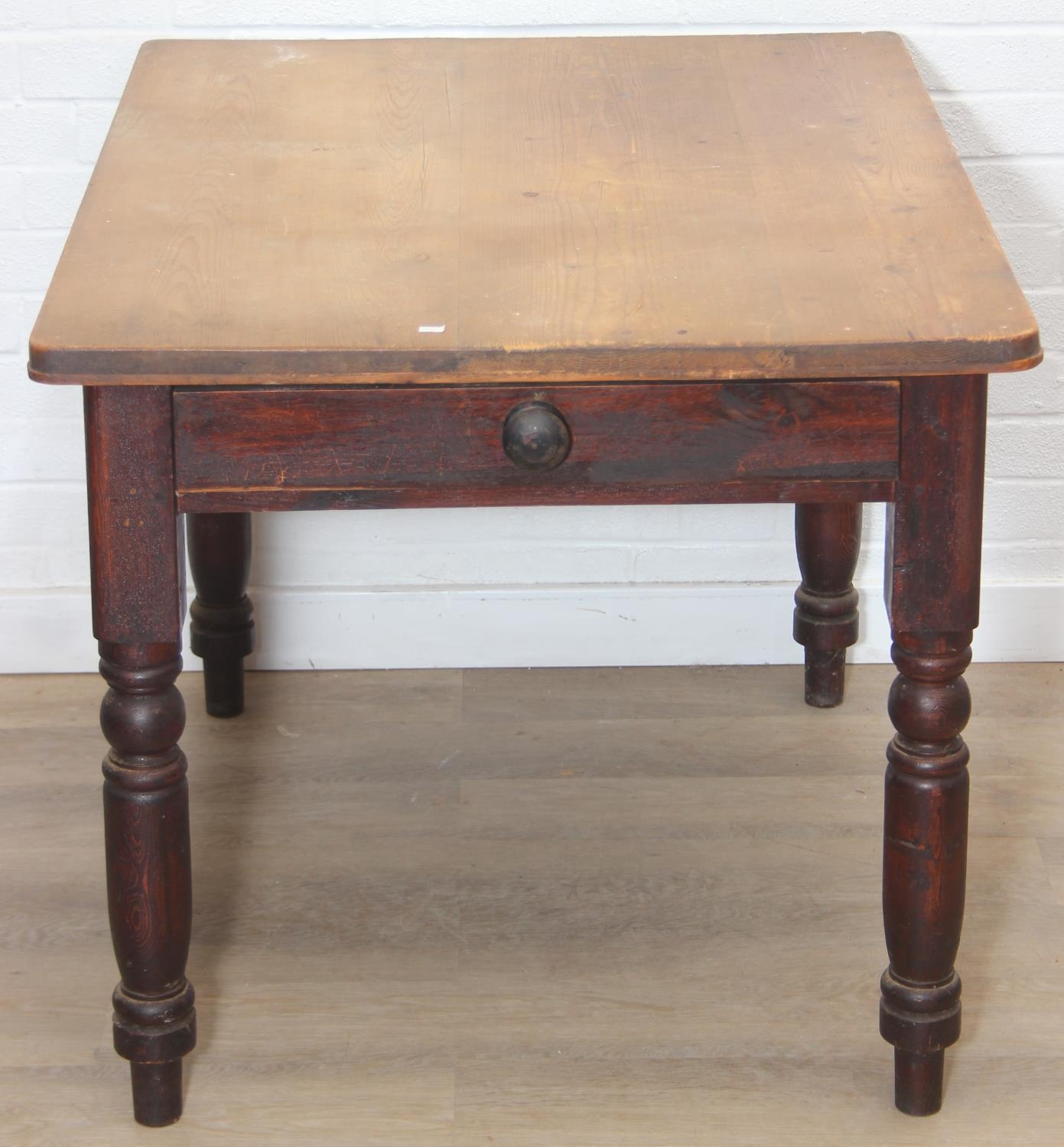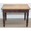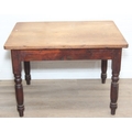A Victorian scrub topped pine table with turned legs and drawer, 107cm x 81cm x 74cm