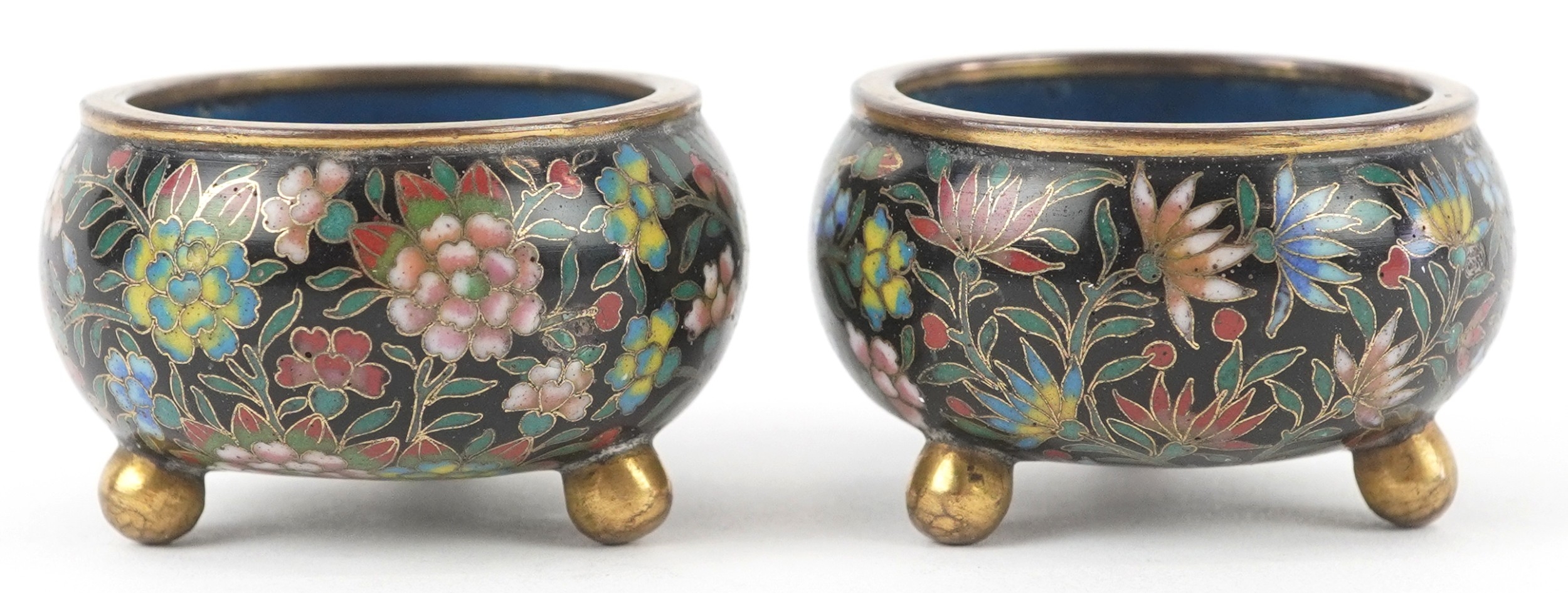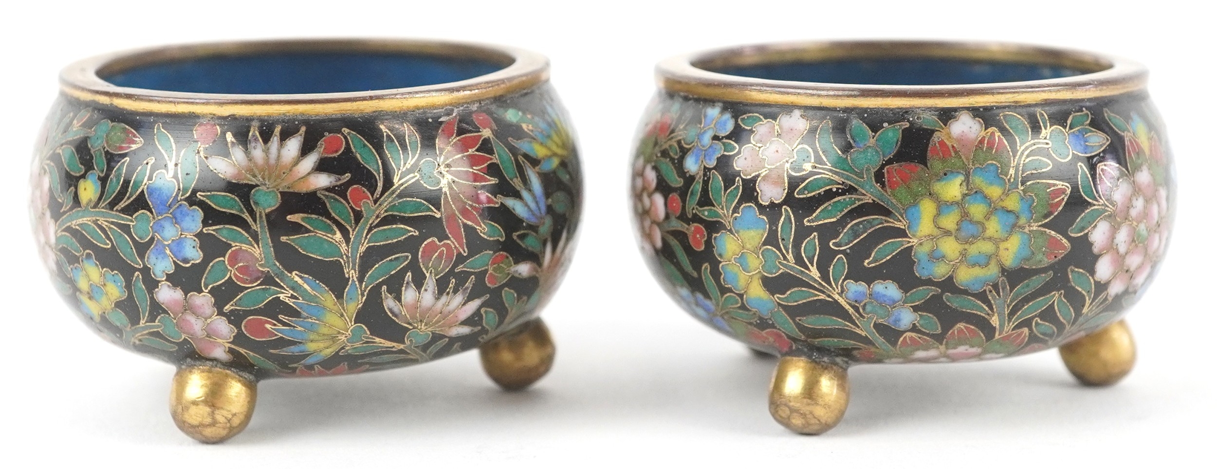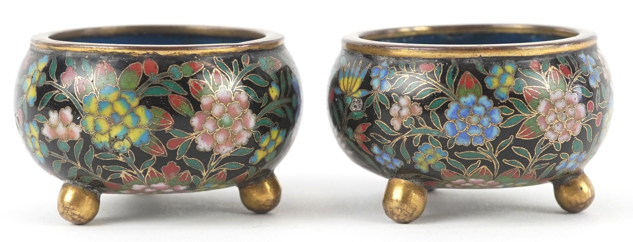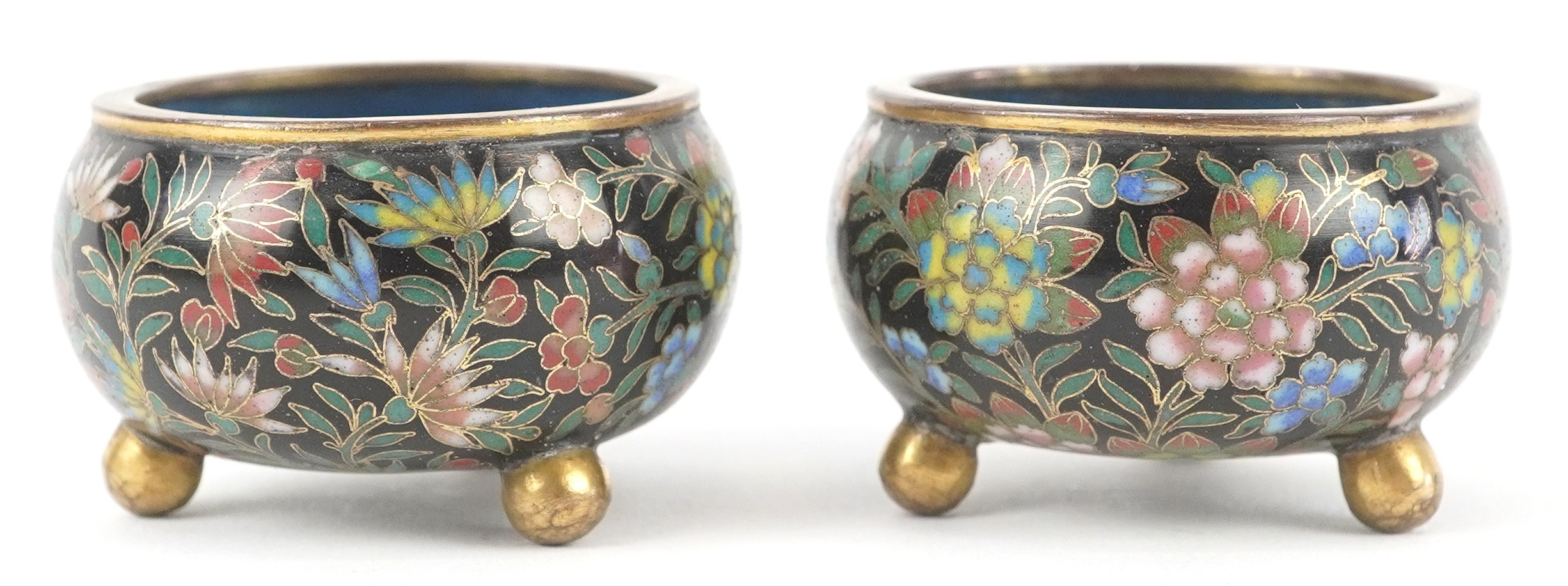 A pair of Chinese cloisonné open salts, 4.3cm in diameter.