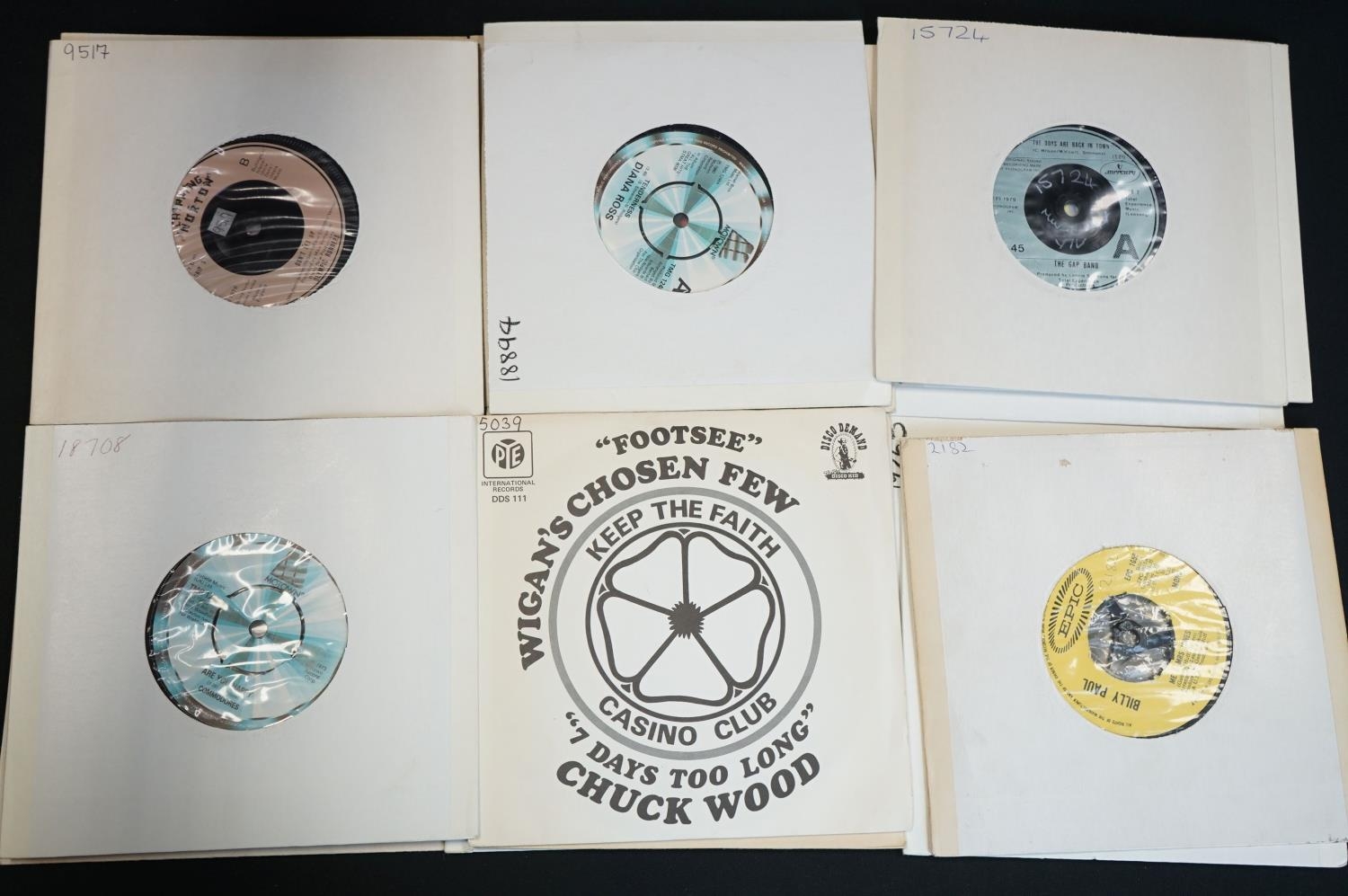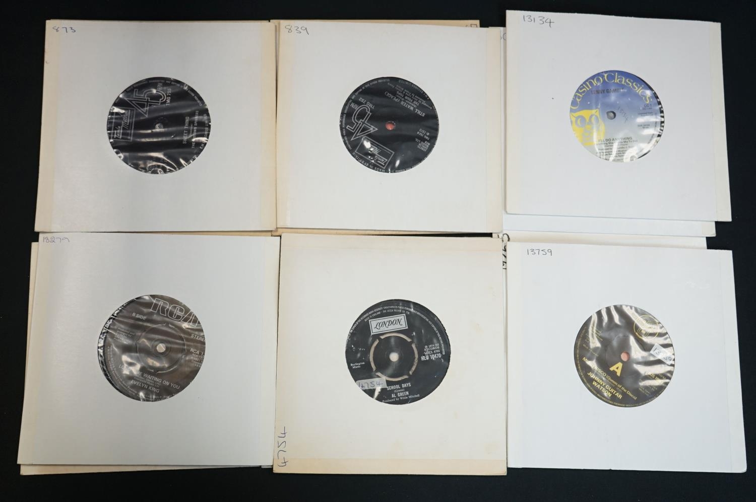 Vinyl - Over 100 Northern Soul, Soul, Funk, Boogie 7" singles including Aretha Franklin, Al Green, Jimmy Ruffin, Ronnie Dyson, Candy Staton, Johnny Guitar Watson, Lenny Gamble, The Majestics, Isley Brothers, Four Tops, Motown Spinners and many more. Vinyl at least Ex overall. Mainly card sleeves. From the Granada Television / Yorkshire Television music library, therefore most have library stickers/numbers to sleeve or vinyl or both.