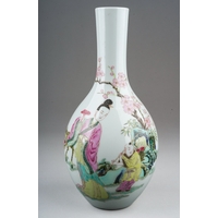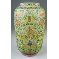 A Chinese Famille Rose baluster vase polychrome enamelled on...