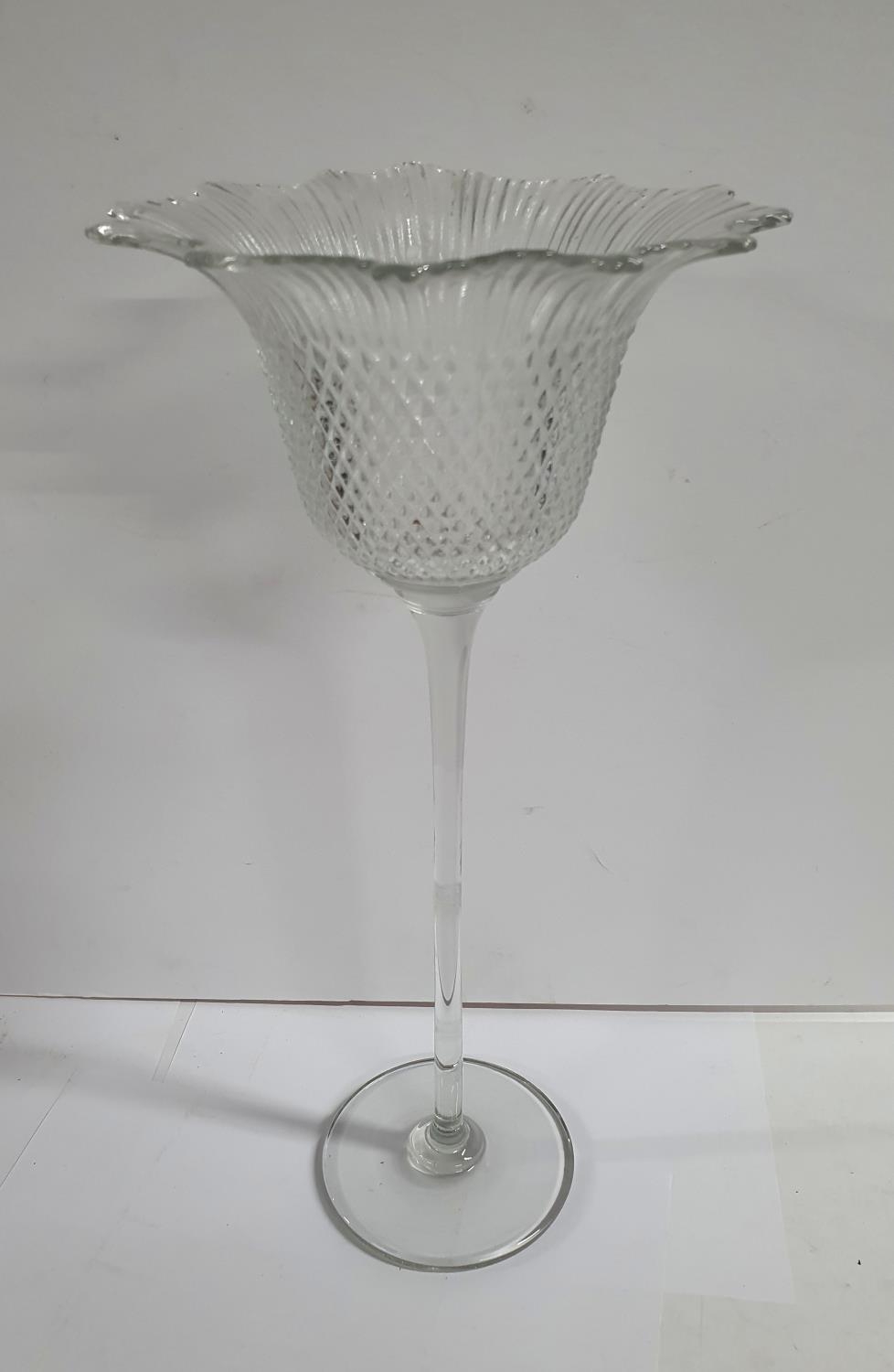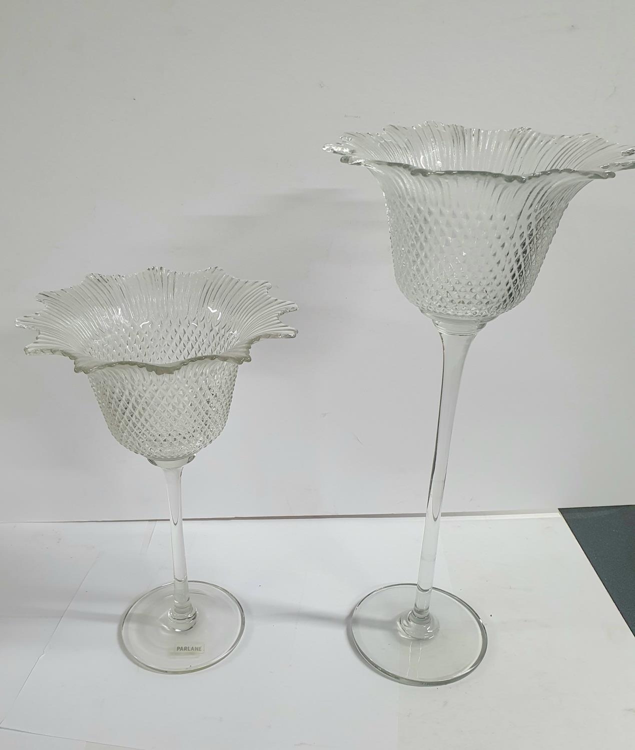 Pair of fine quality free standing, tall glass candle holders by Parlane (2),