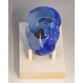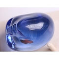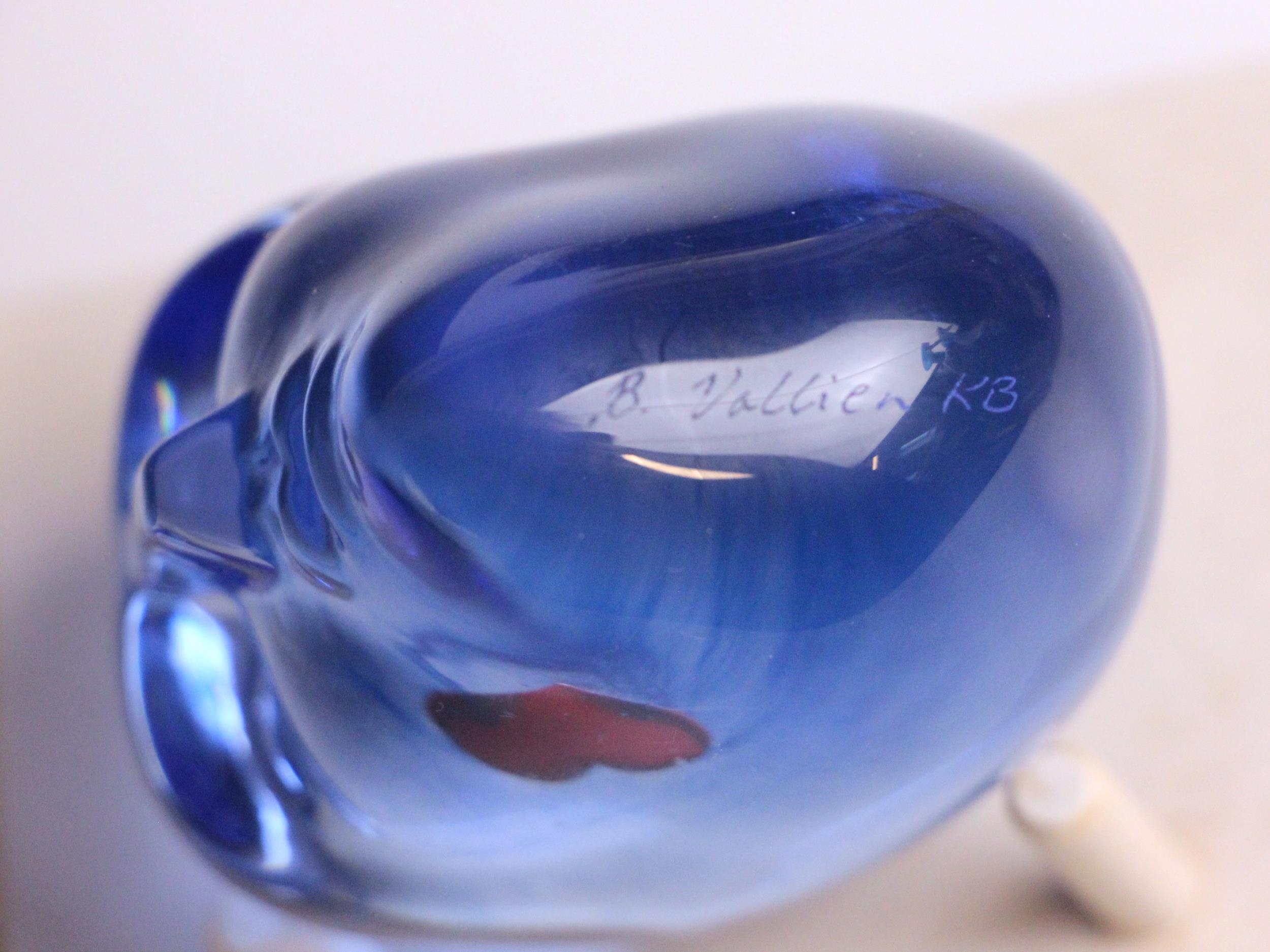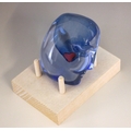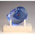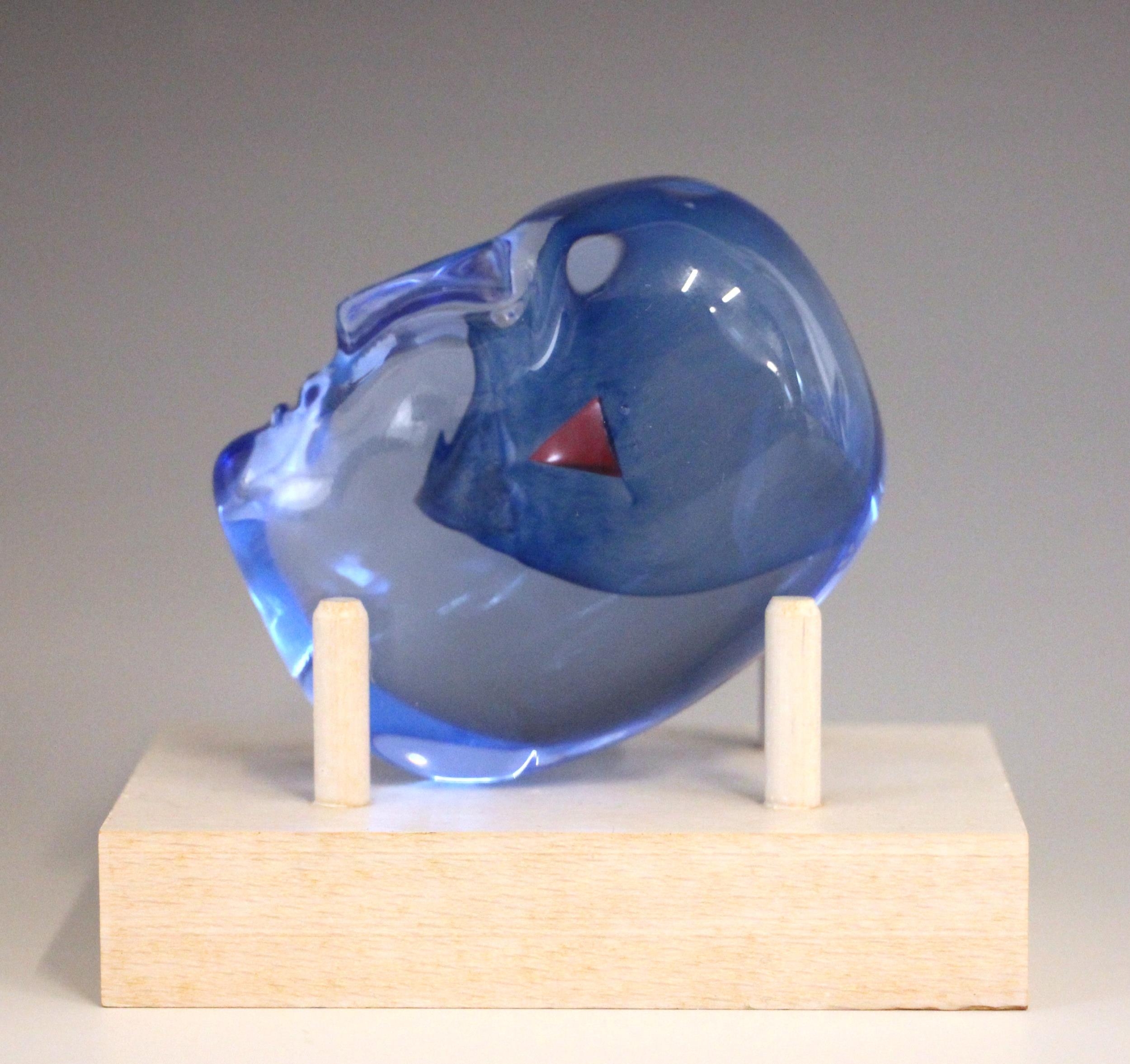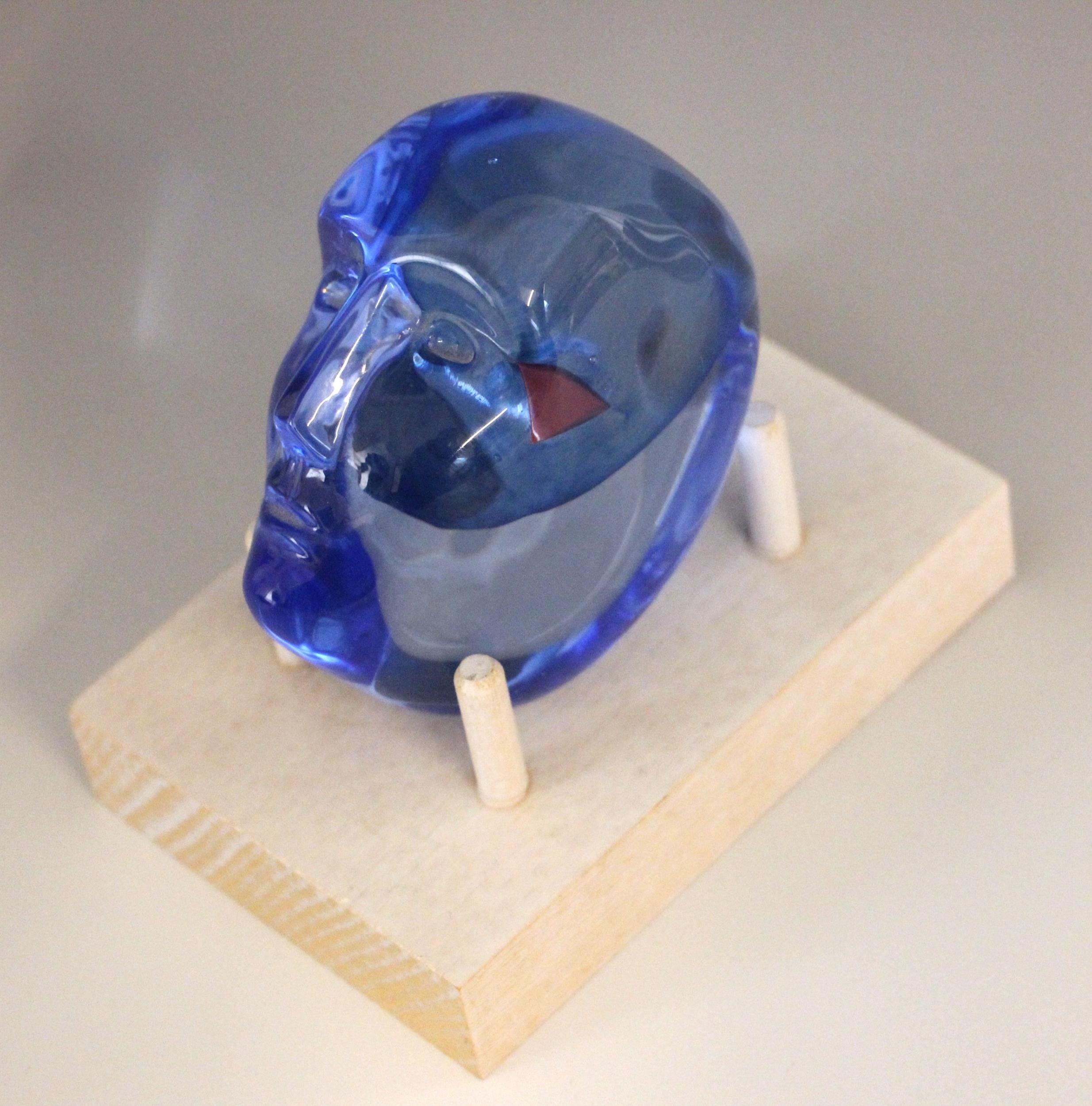 A Bertil Vallien (Swedish, b. 1938) for Kosta Boda, a glass 'Brains Heart' sculpture from the 'Brains' series, modelled as a blue glass head inset with a red heart, engraved signature below chin, 7.5cm high overall, on a conforming Kosta Boda peg stand,