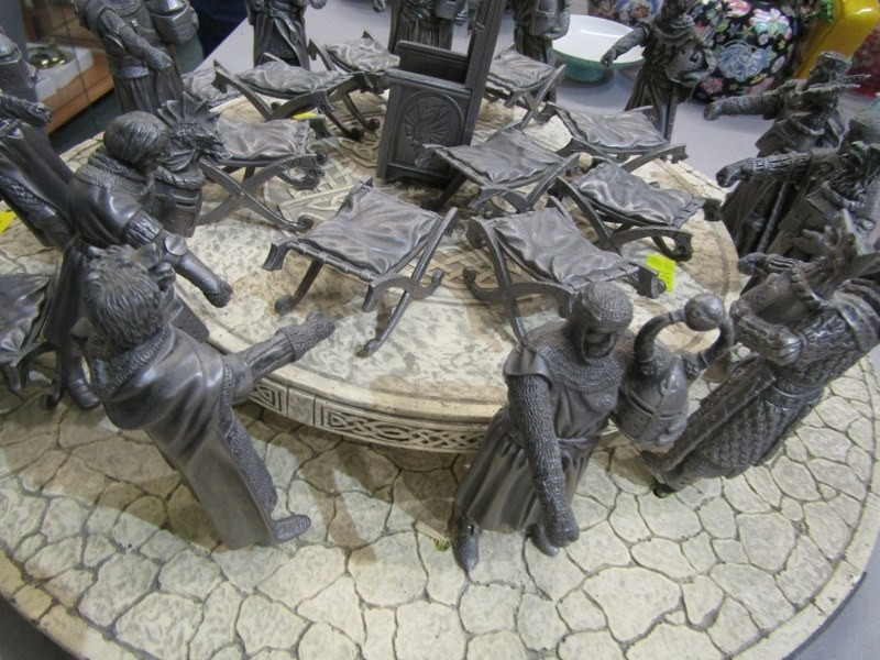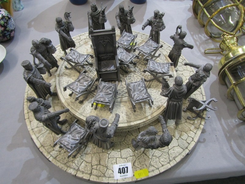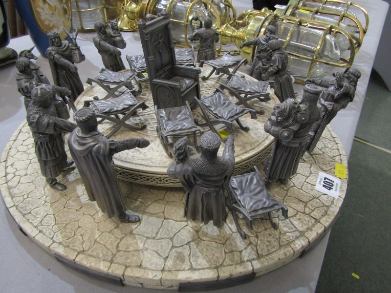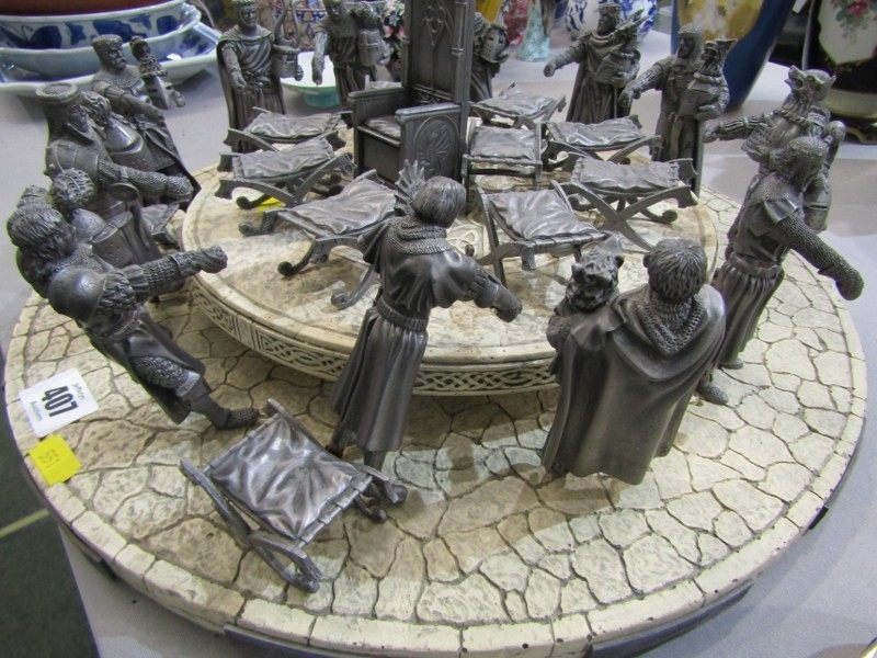 KING ARTHUR'S ROUND TABLE, model depicting King Arthur's Round Table with 12 cast metal figures of Knights, diameter 40cm.