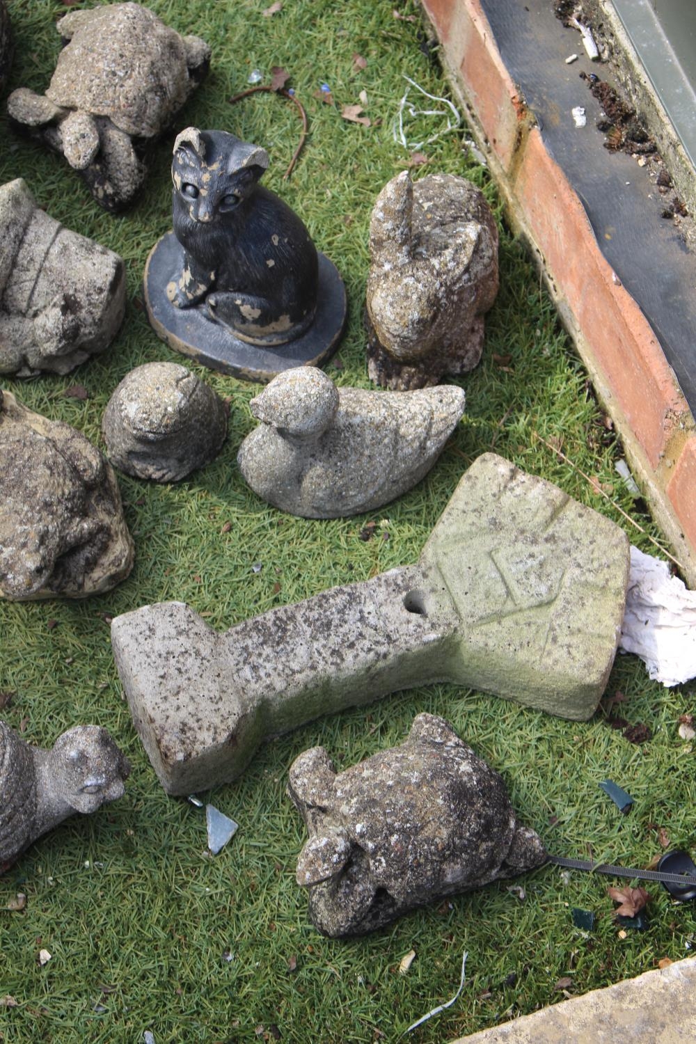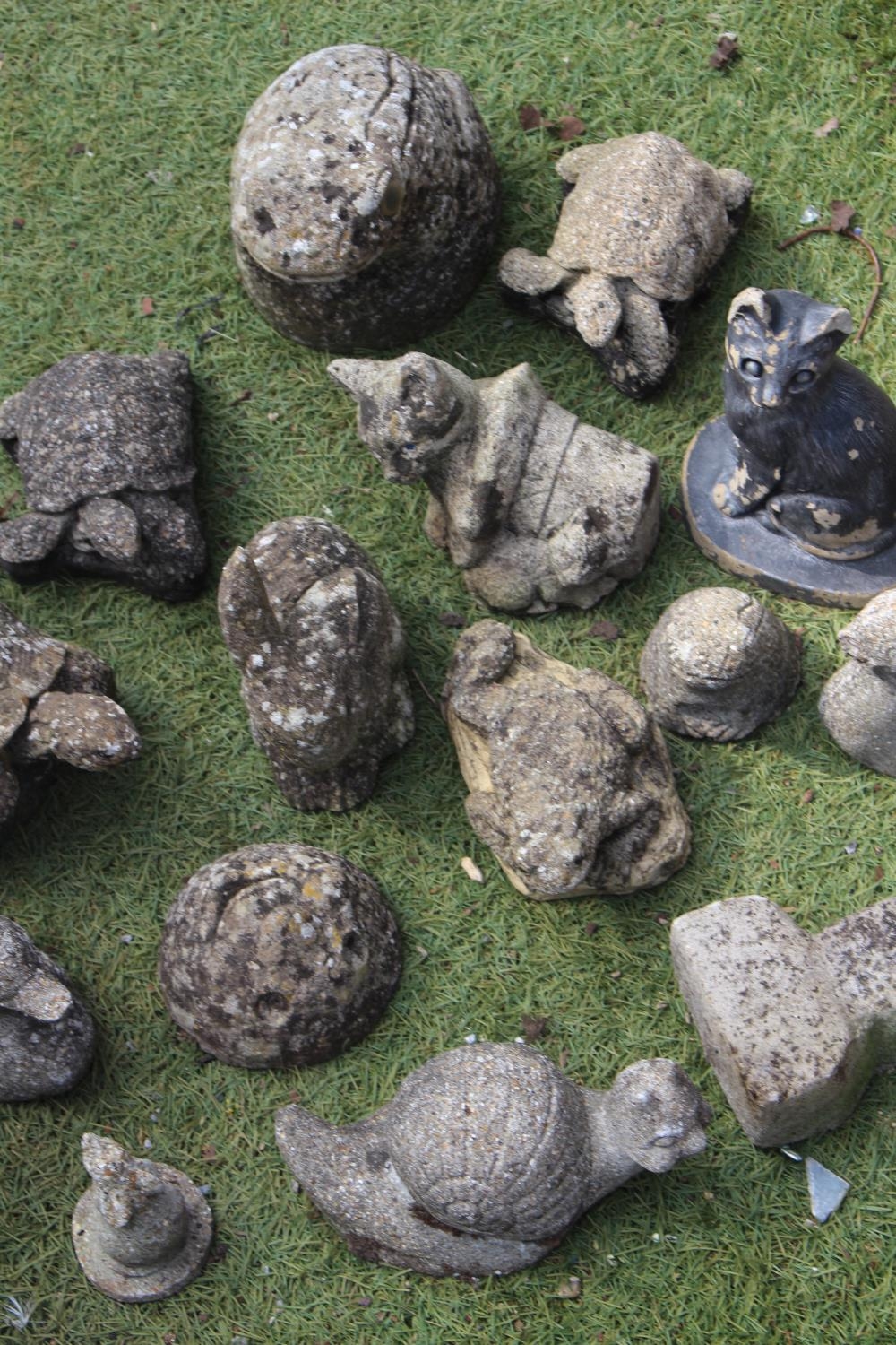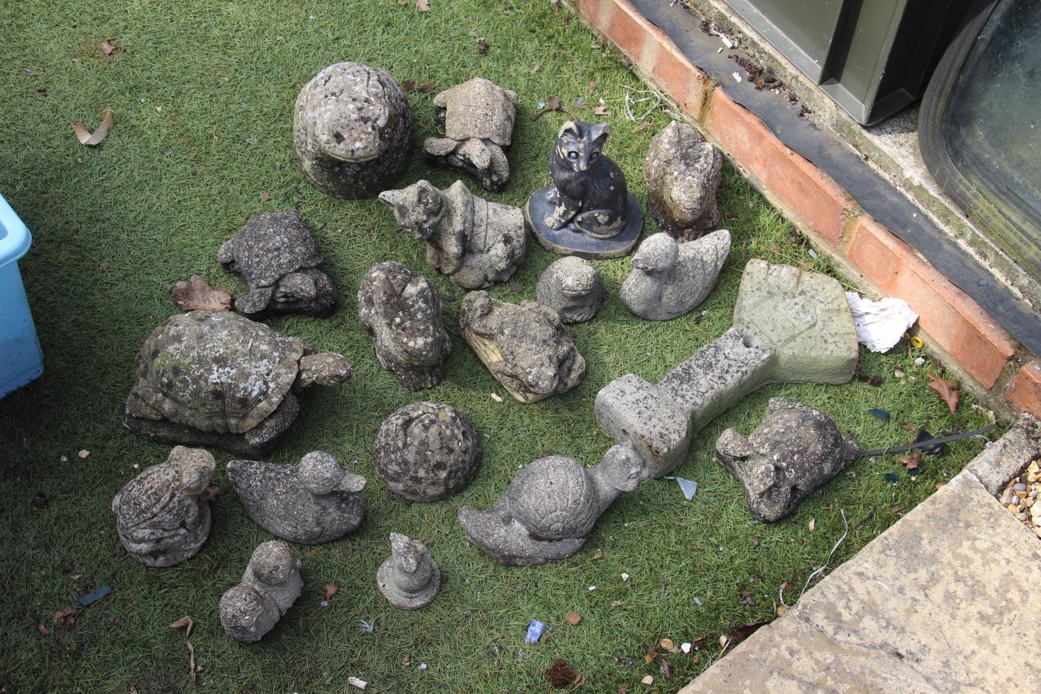 LARGE QUANTITY OF STONE ANIMALS TALLEST 30CM