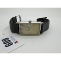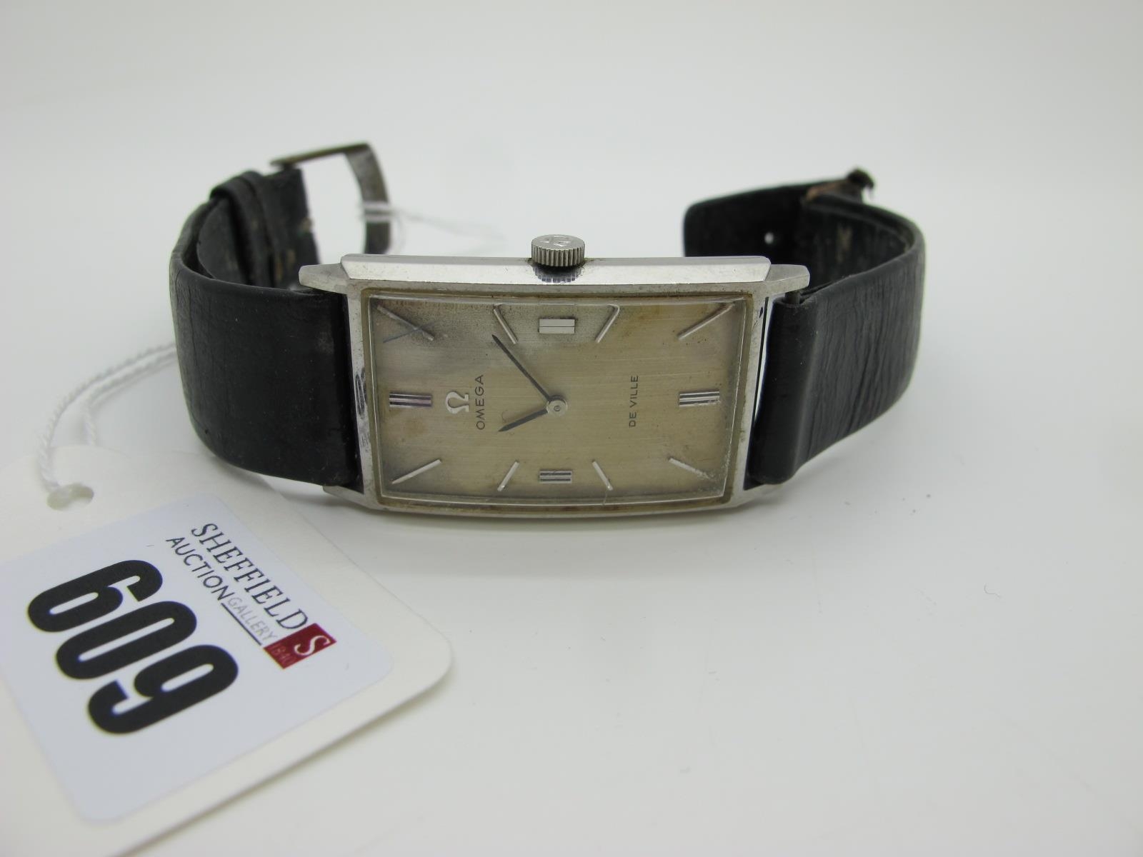 Omega; A Vintage De Ville Gent's Wristwatch, the signed rectangular dial with line markers, the movement stamped "Omega" and numbered "26777927", inside the case back stamped "Omega Watch Co" "111.016", on a strap.