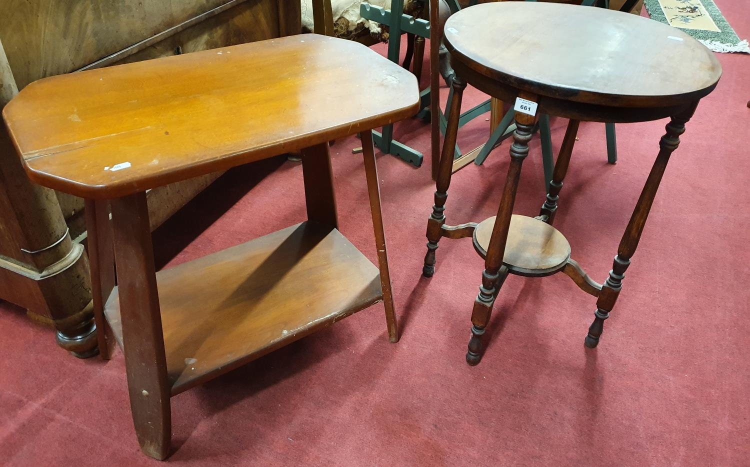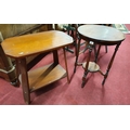 A modern circular Table(D 46 x H 64 cms) along with a rectangular example. 61 x 36 x H 58 cms approx.