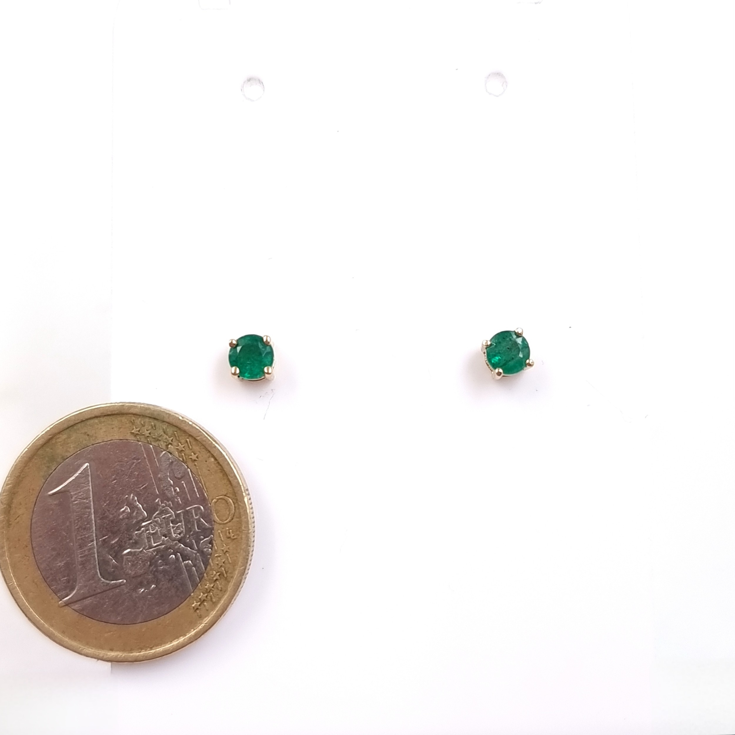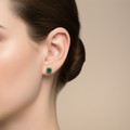 Star Lot : A pair of nine carat gold Emerald stud earrings with 10 carat gold backs. Please note, the image of the modelled item was created by a new imaging/ staging software called showiton.ai. Upload a simple image of a piece of jewellery and the software stages it on a model for you. Paste the URL (showiton.ai) into your browser and try it for free. It’s a very simple, user-friendly platform.