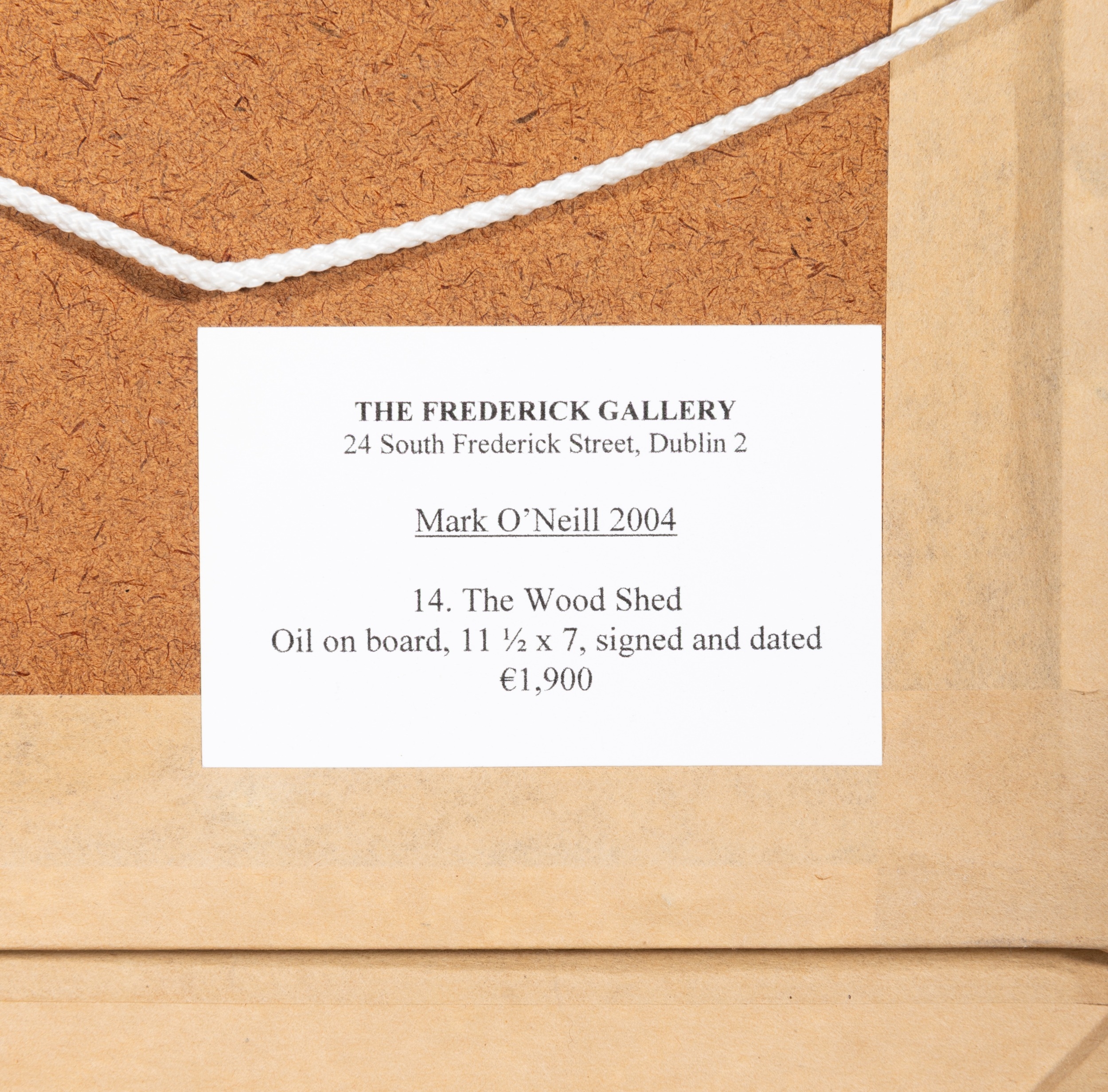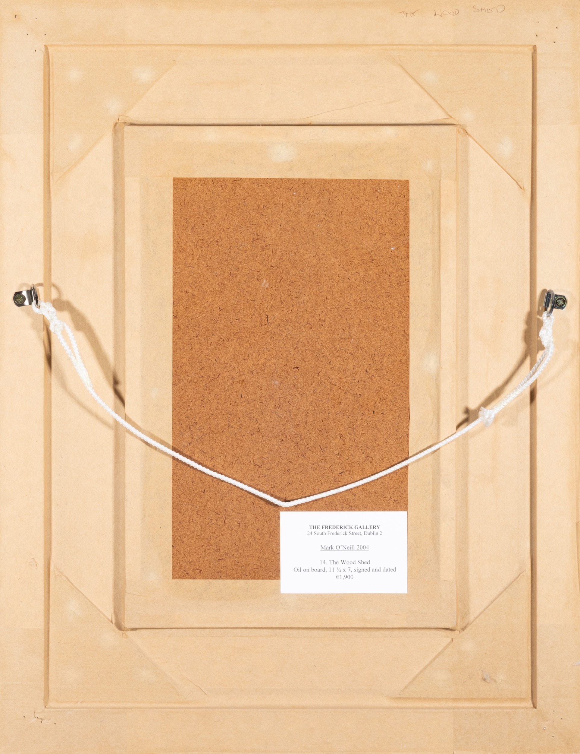 Mark O'Neill (b. 1963) The Wood Shed (2004) Oil on board, 29.5 x 18cm (11½ x 7'') Signed and dated 2004 Provenance: With The Frederick Gallery, Dublin, label verso