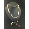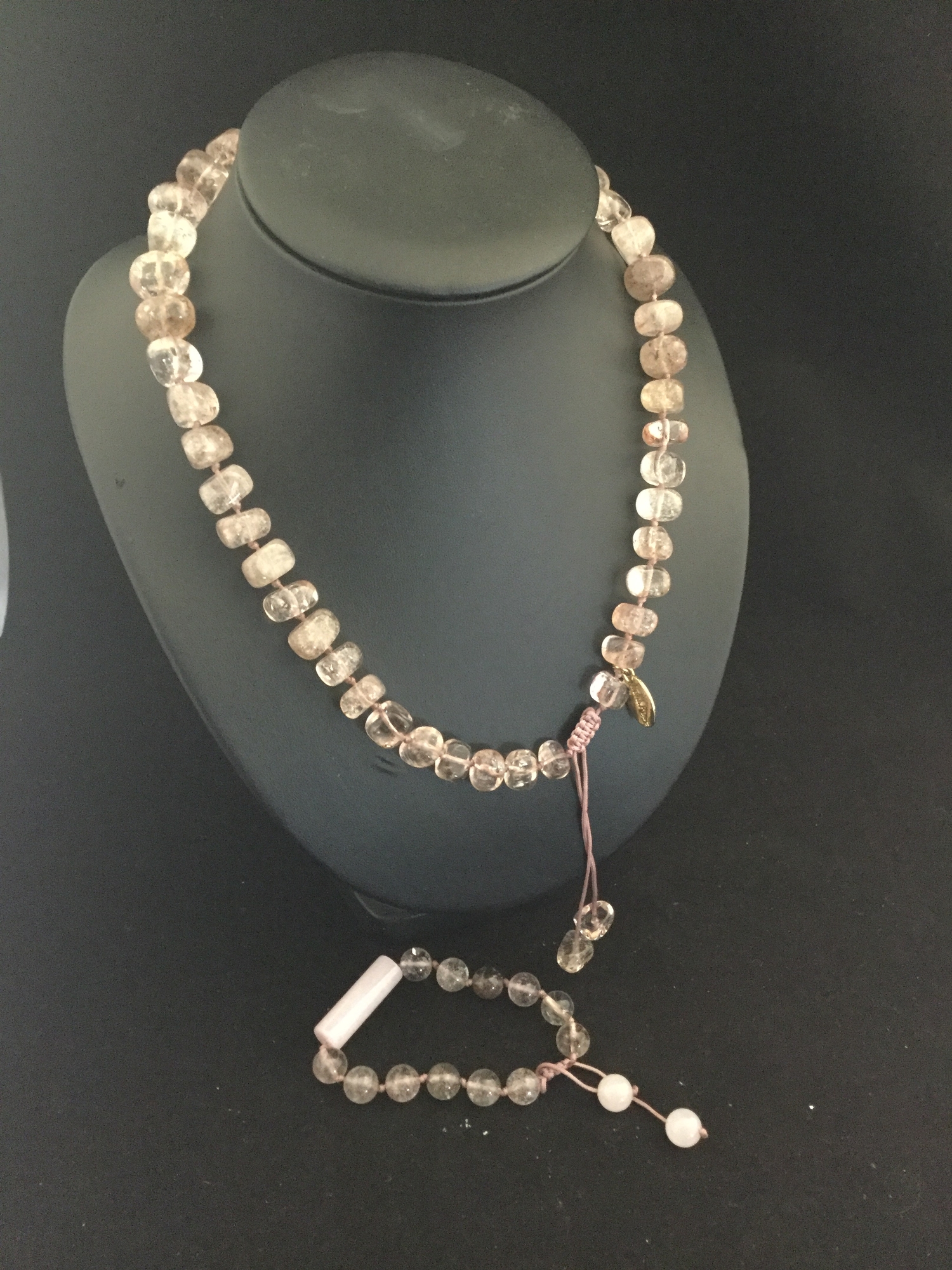 A modern rose quartz necklace and bracelet suite by Lola Rose -
