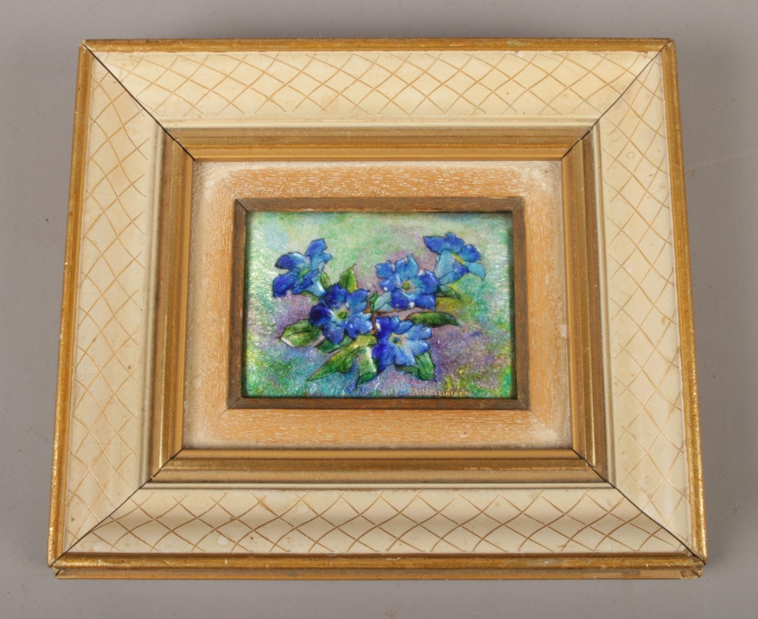 A framed Limoge enamel plaque. signed Faure. (6cm height 8cm width)