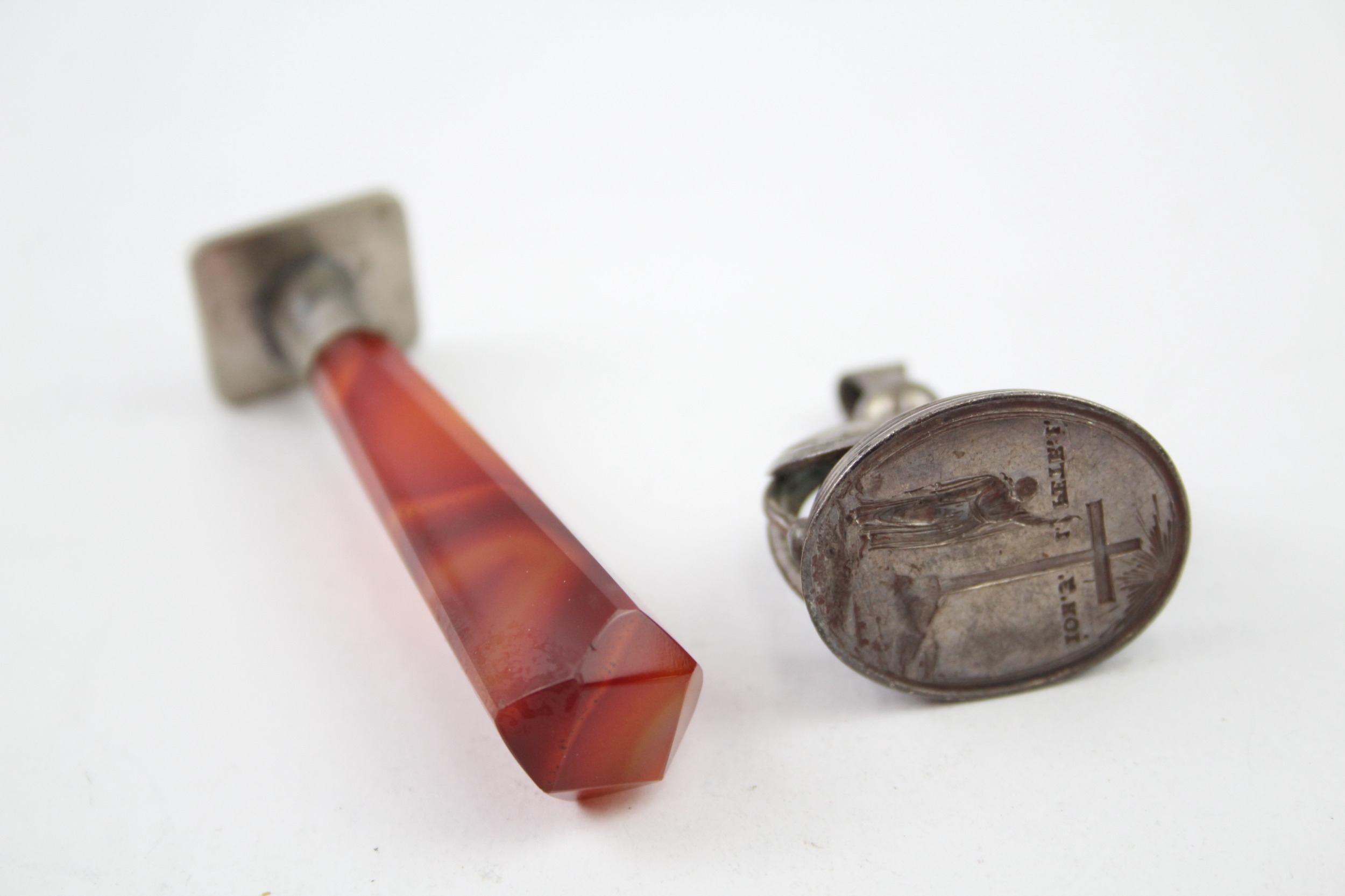 2 x Antique Wax Seals Inc .800 Silver, Agate, Engraved Etc (37g)