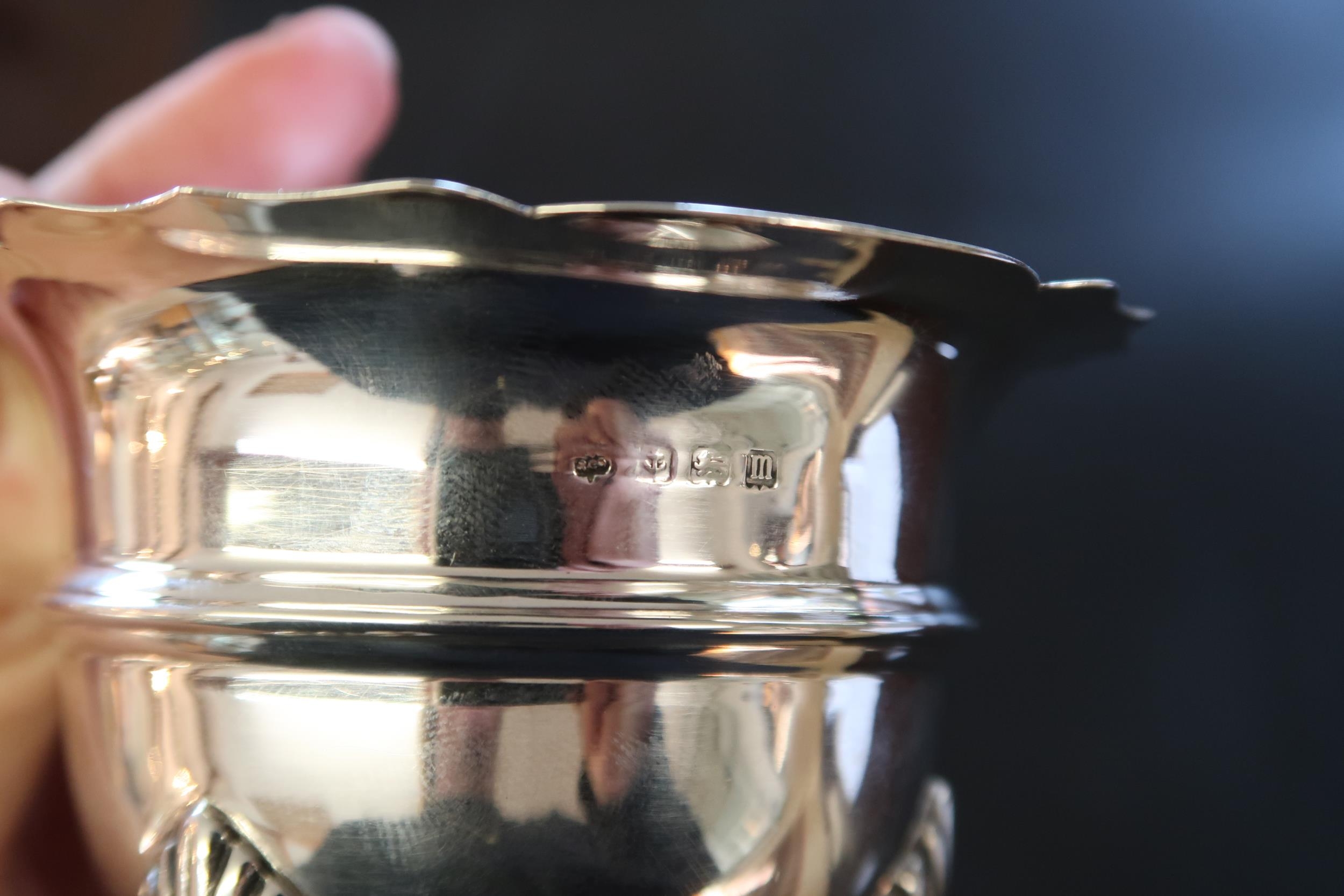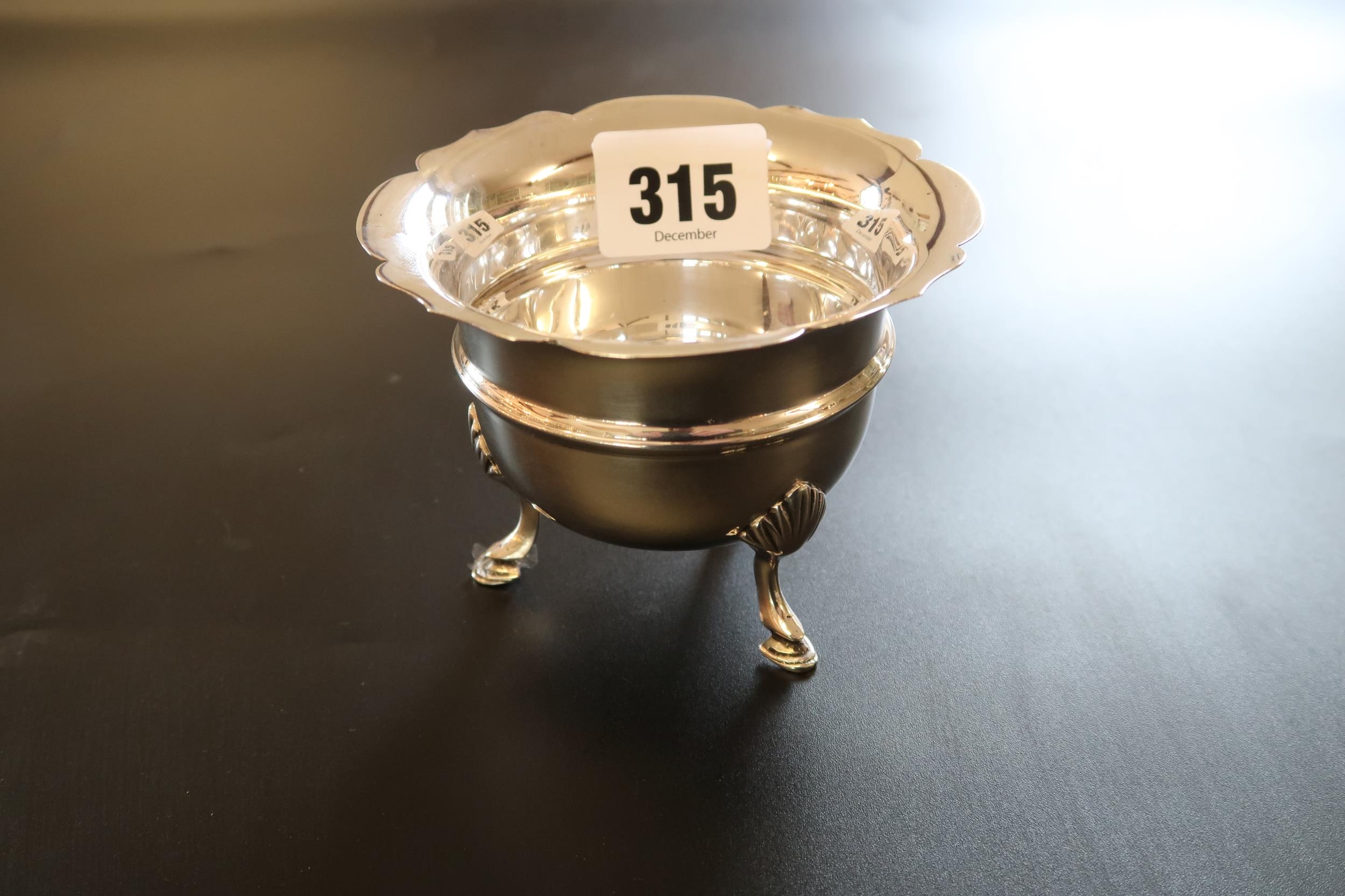 A Sterling Silver Open Salt Dish, Featuring a flared cauldron shaped design resting on three hoofed feet. Assayed Birmingham 1911.