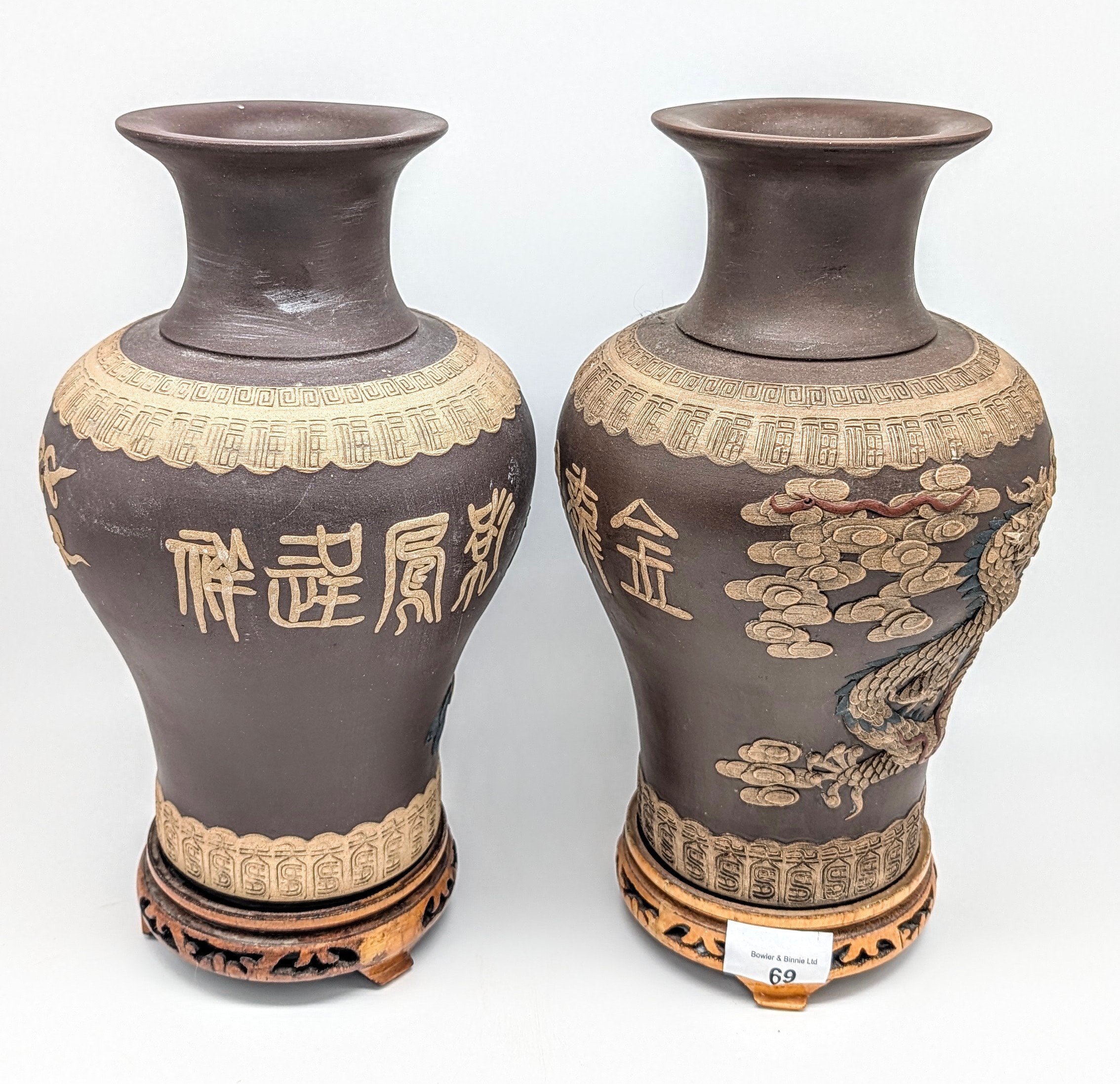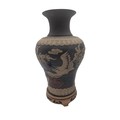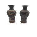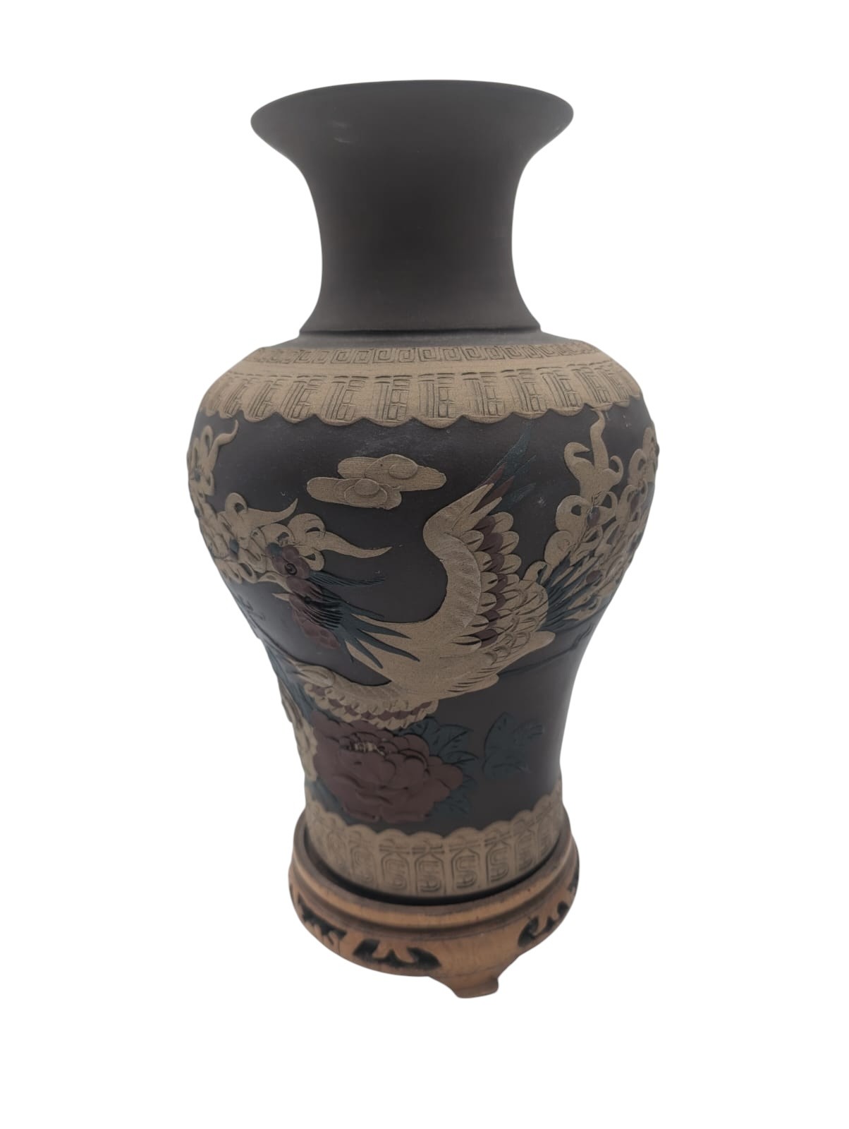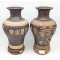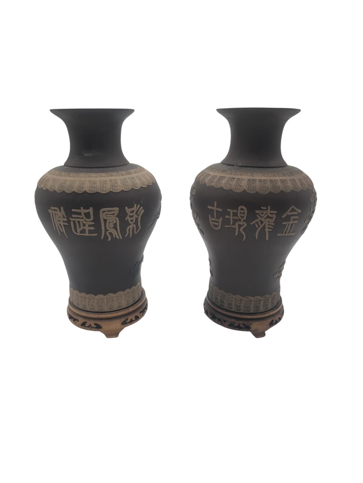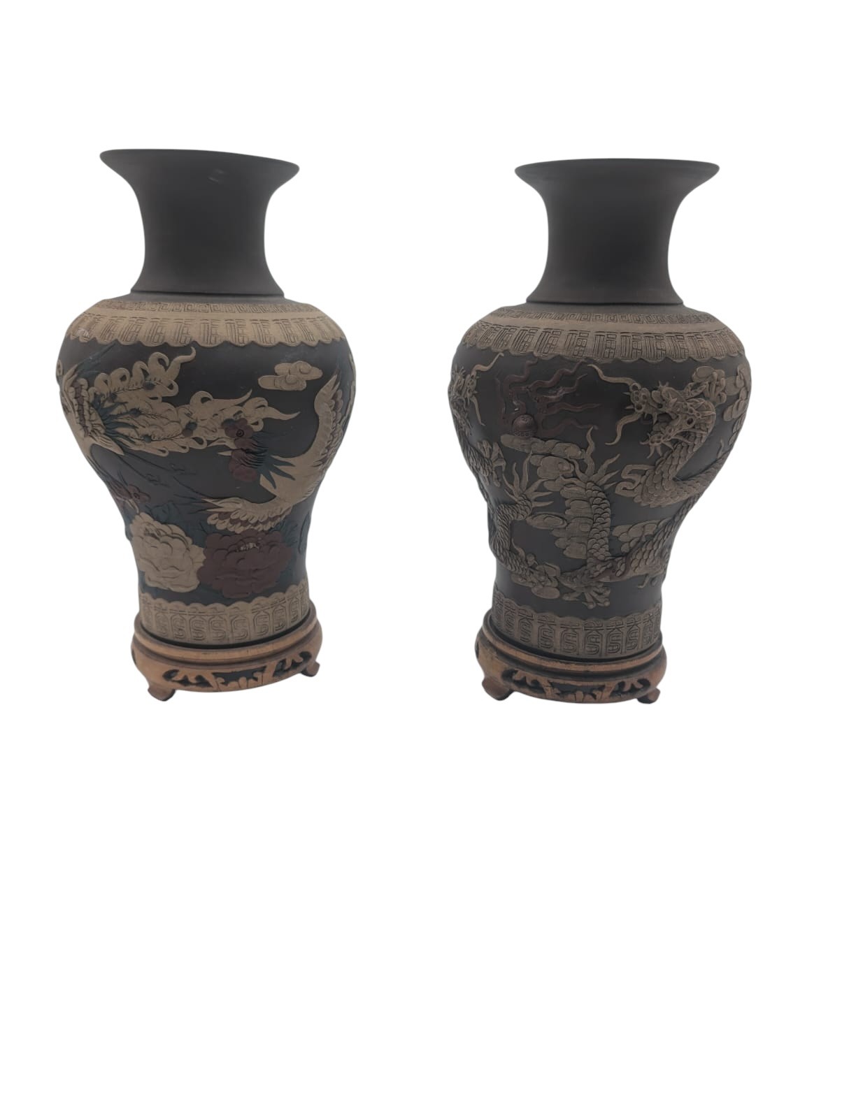 Pair Of Lisha Clay Dragon and Phoenix Vases with decorative original stands, Standing without Stands 28cm tall.