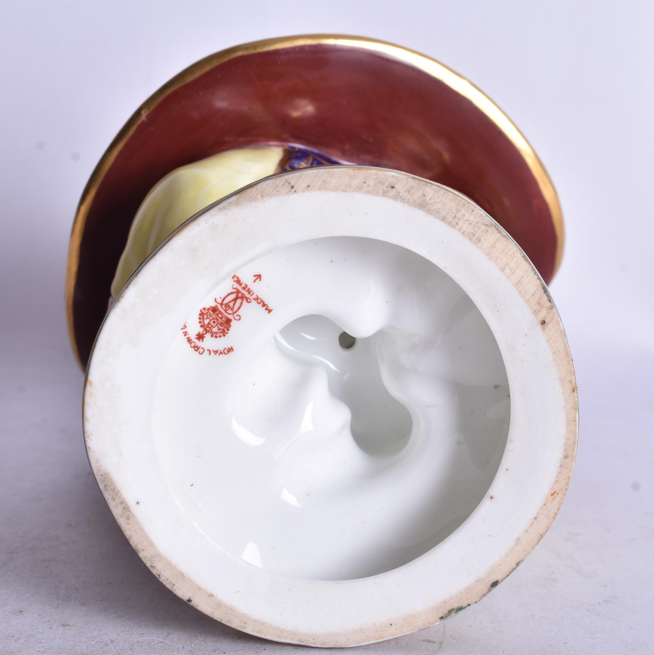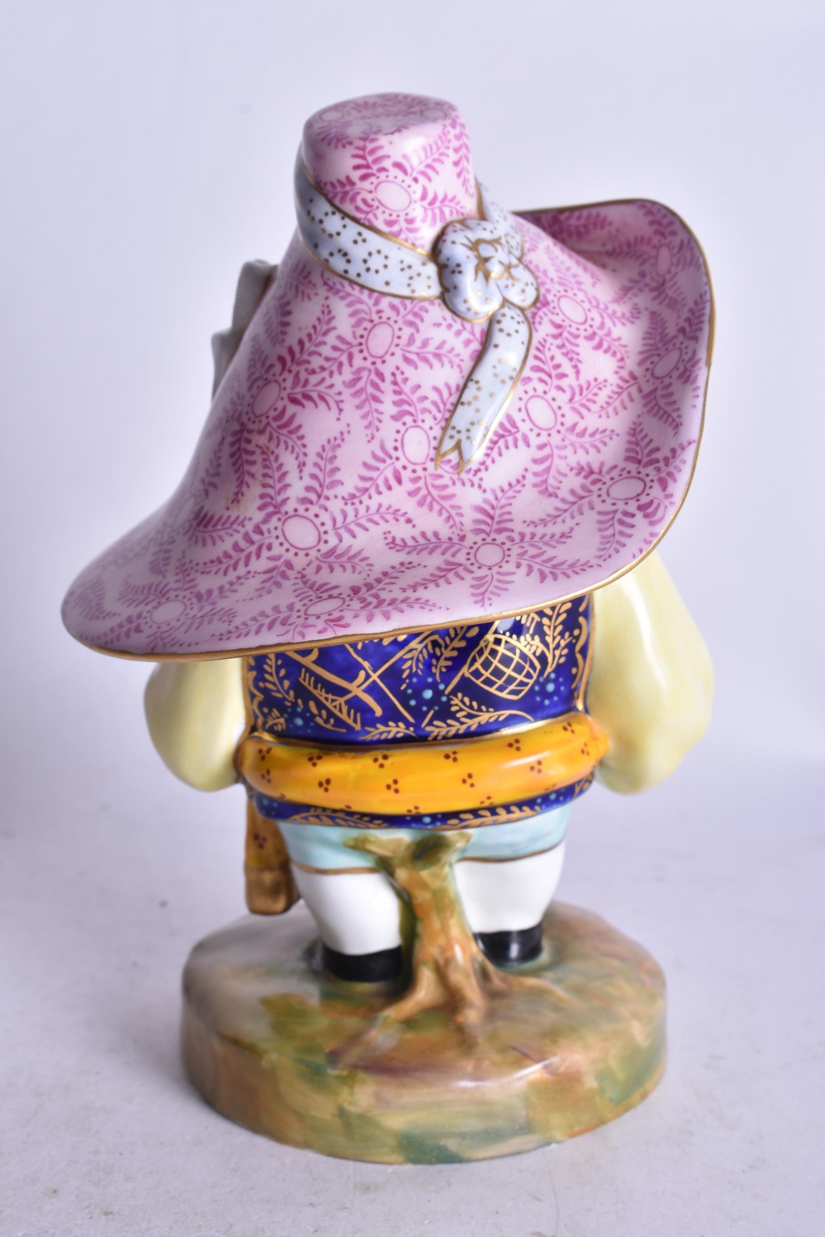 Royal Crown Derby Mansion House Dwarf standing with a floral hat with an inscription date mark for 1930. 16cm height