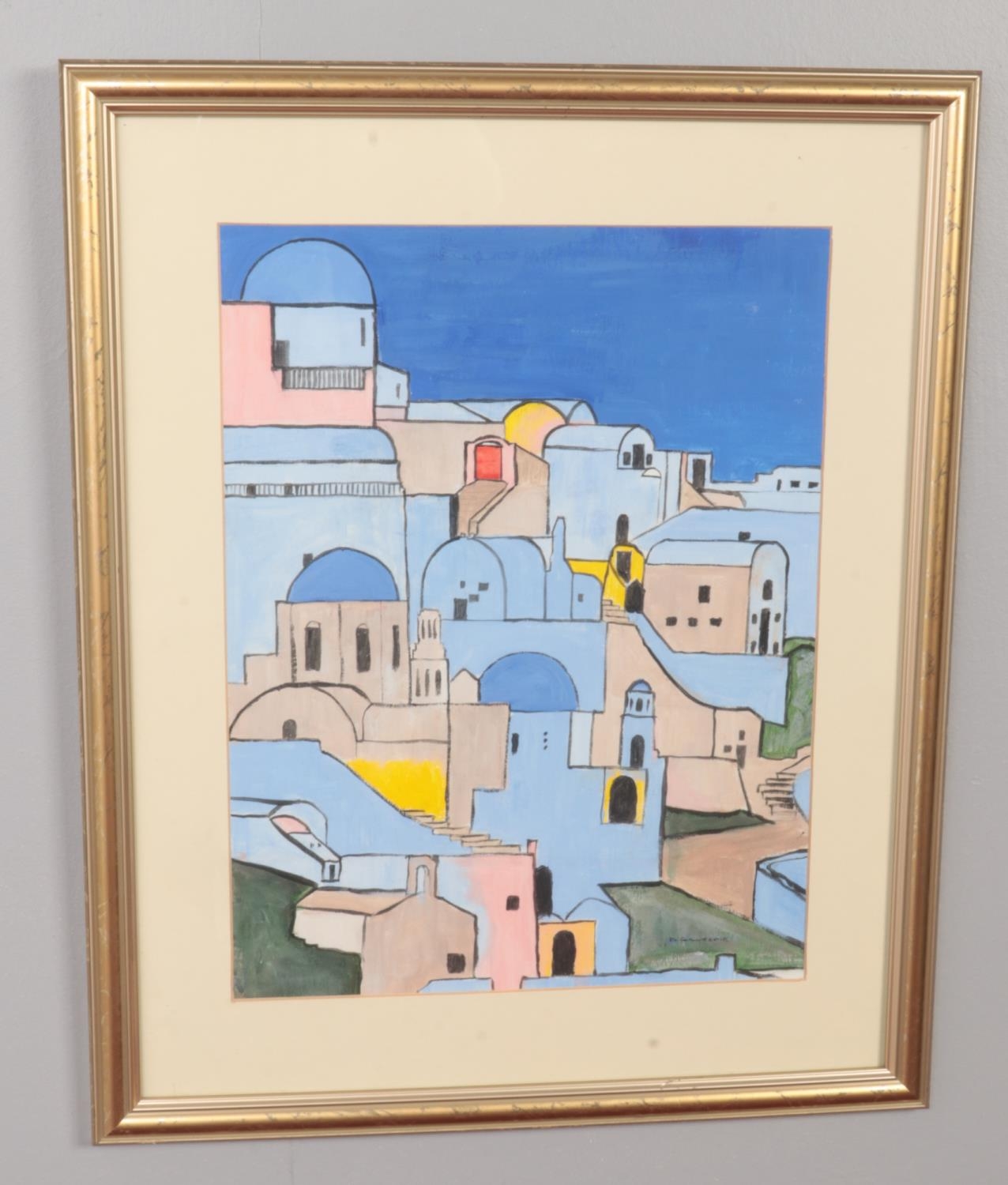 D.Gillespie, gilt framed painting depicting an Eastern city. (40cm x 30cm)