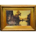 After Louis Aston Knight (1873-1948), Cottage by the River, oleograph, 45cm x 70cm, framed