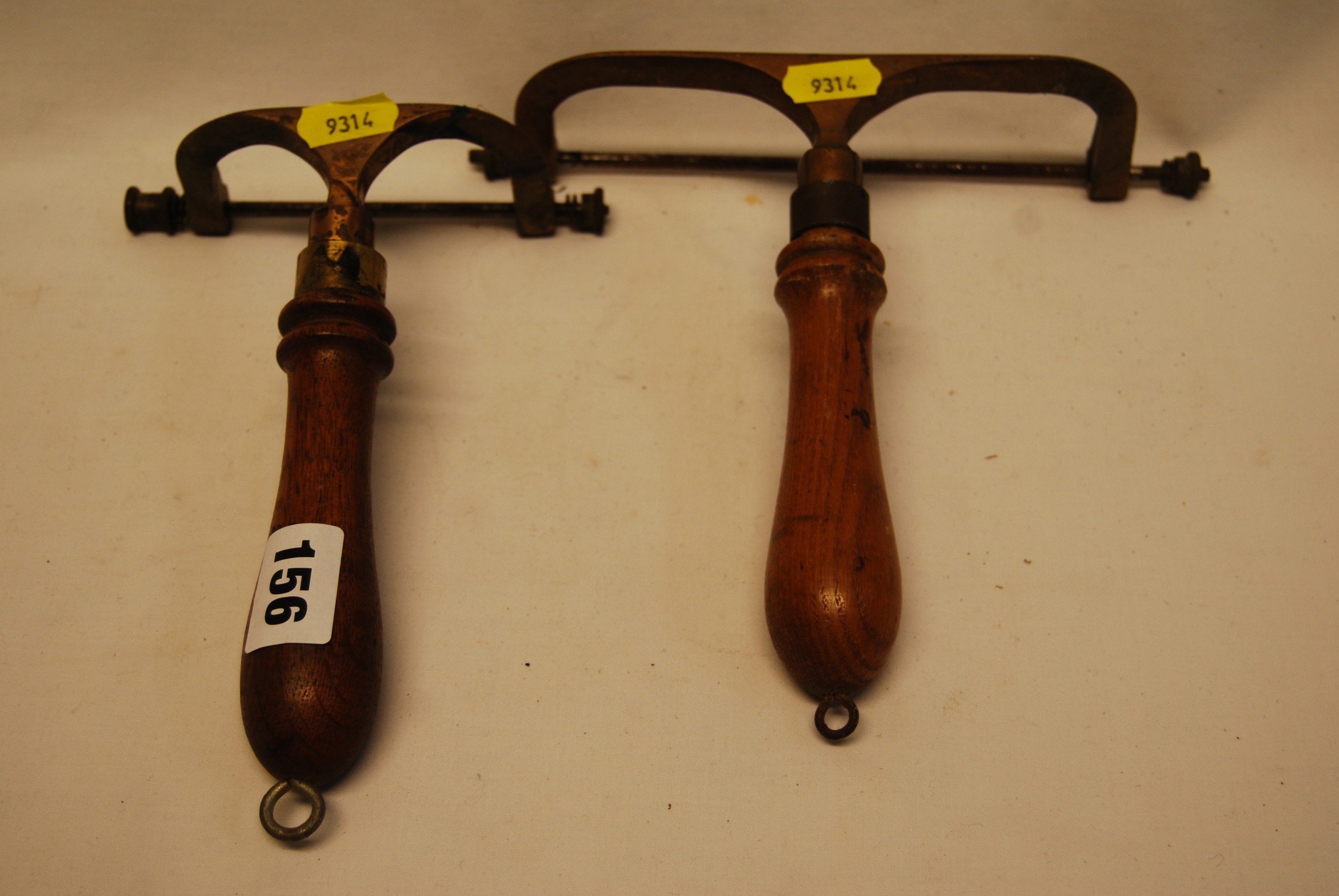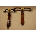 TWO 19TH CENTURY BRASS PRINT MAKING ROLLERS WITH TURNED WOOD HANDLES