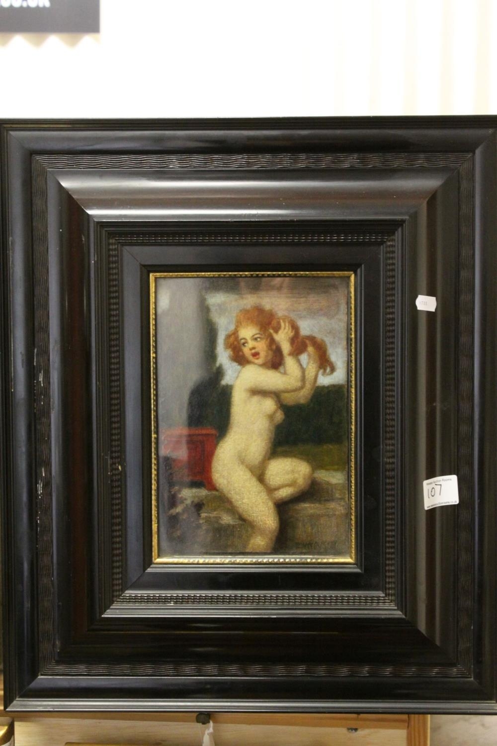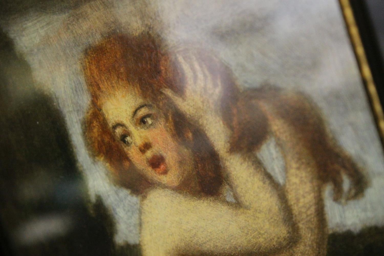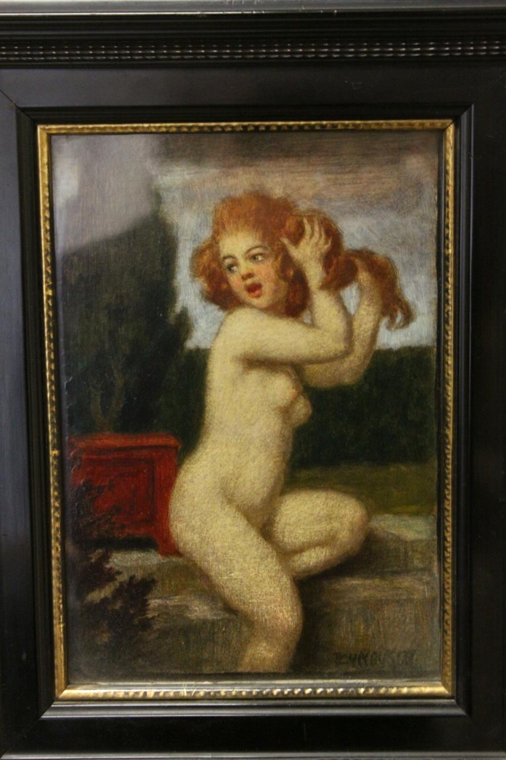 Picture of a Naked Young Woman sat on a Wall, 23cms x 16cms, Framed and Glazed in a Substantial Black Frame