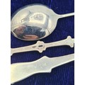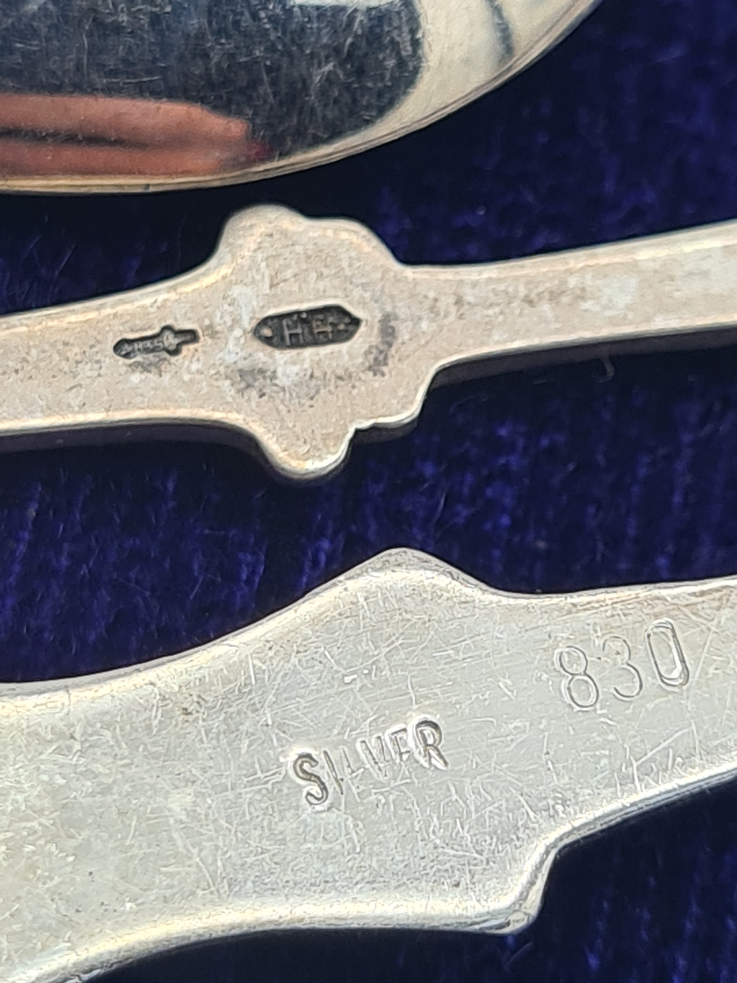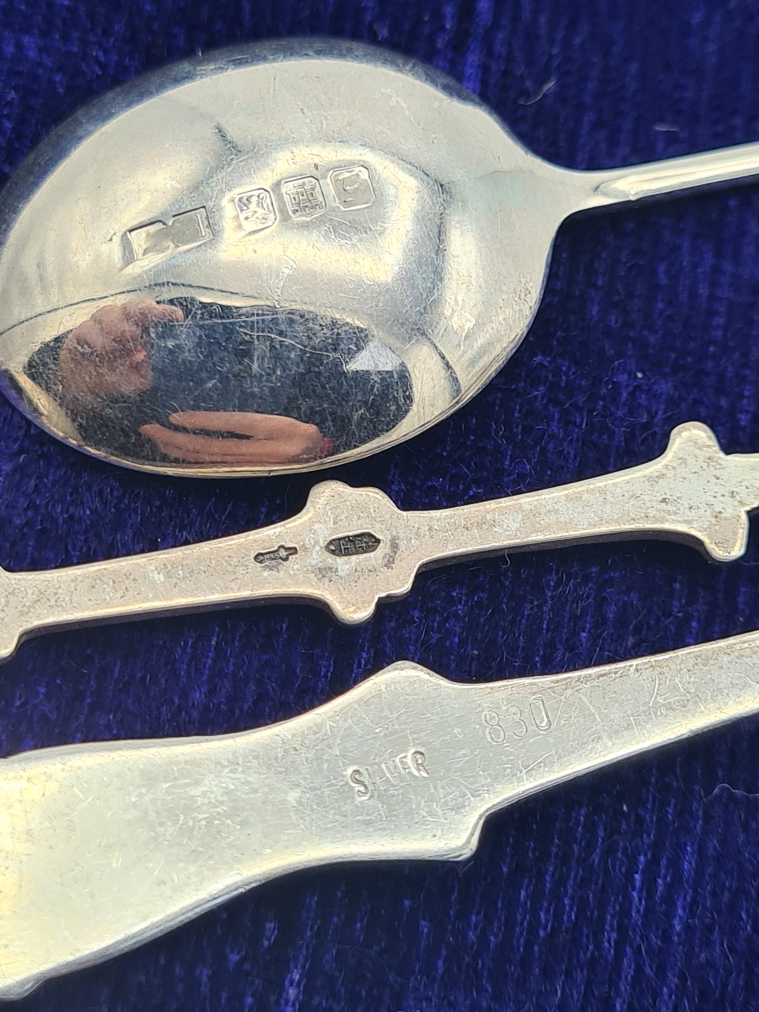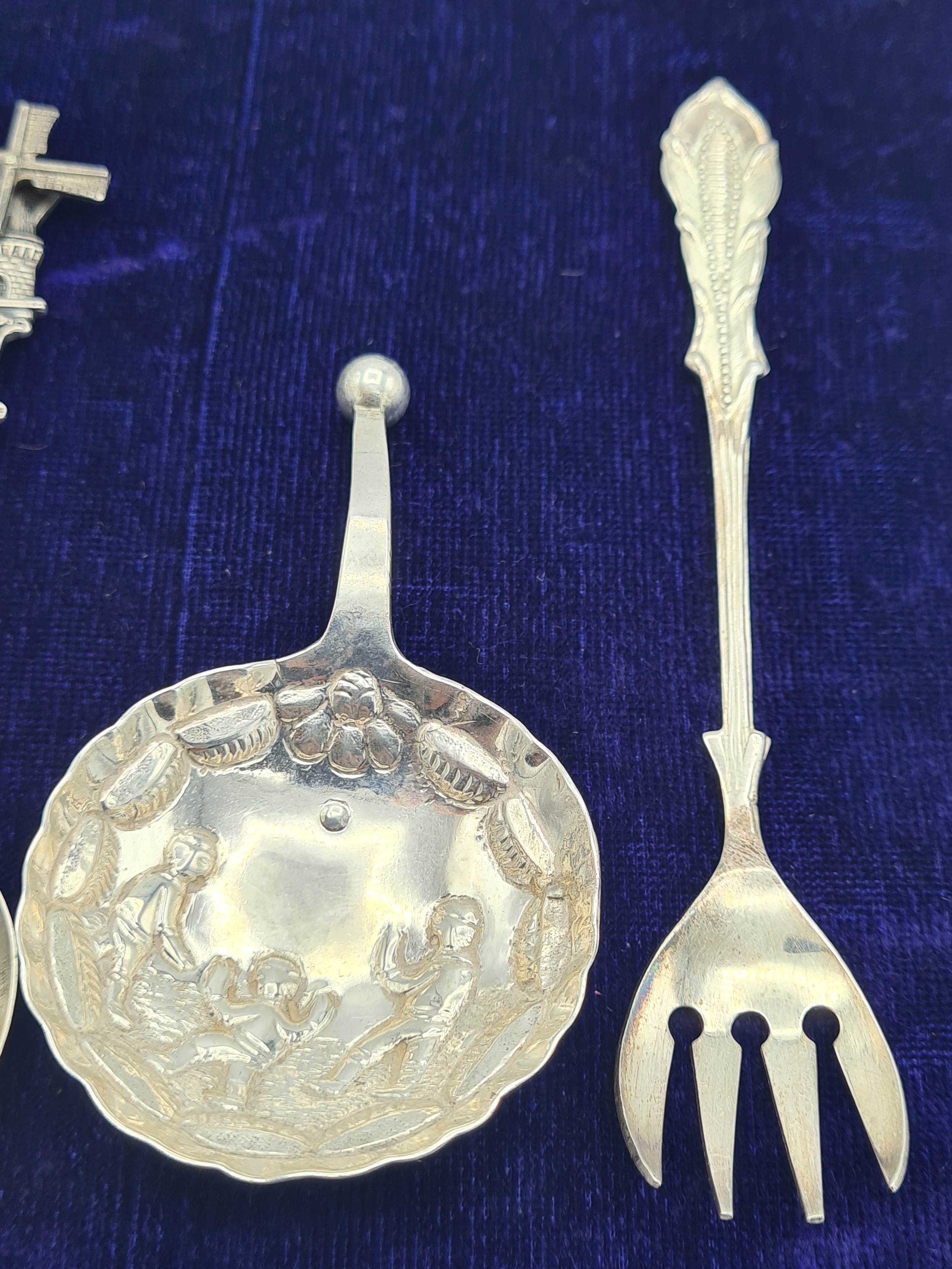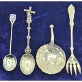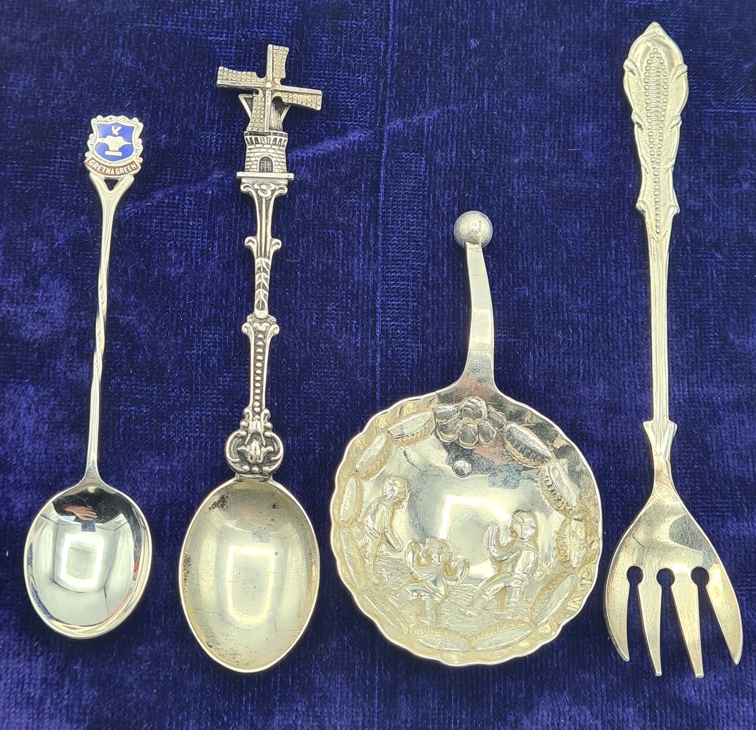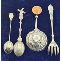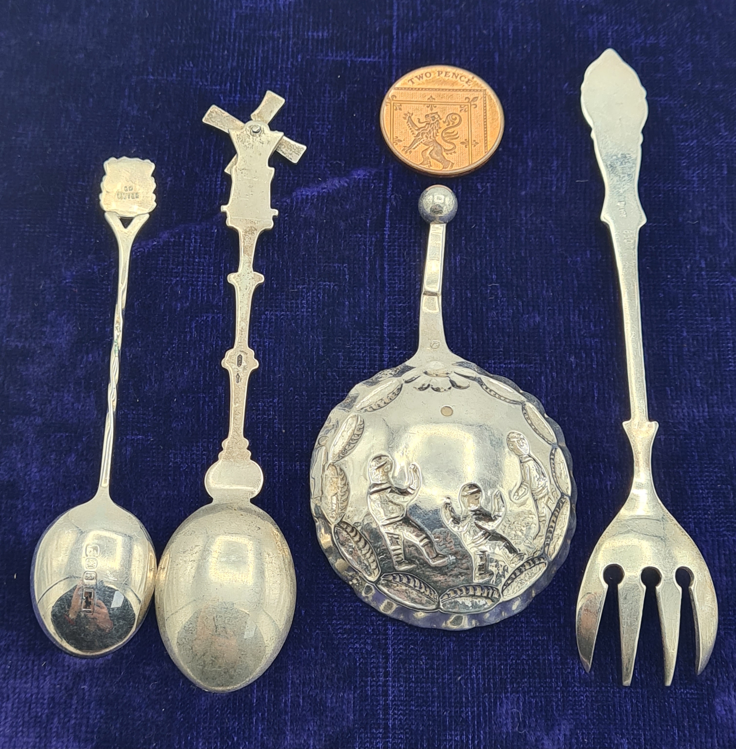 A collection of 4 Continental 800 Silver pieces of cutlery to include a 2 tea spoons, a preserve spoon and a fork. Preserve spoon is tested Silver.