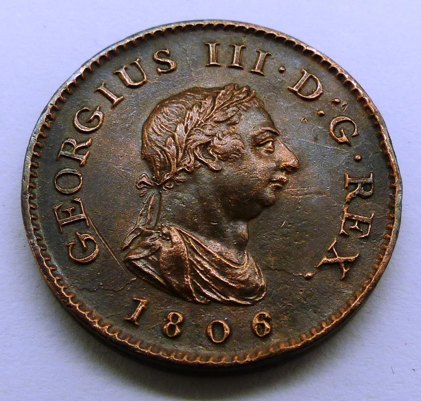 1806 George III farthing, no K variant. P&P Group 0 (£5+VAT for the first lot and £1+VAT for subsequent lots)
