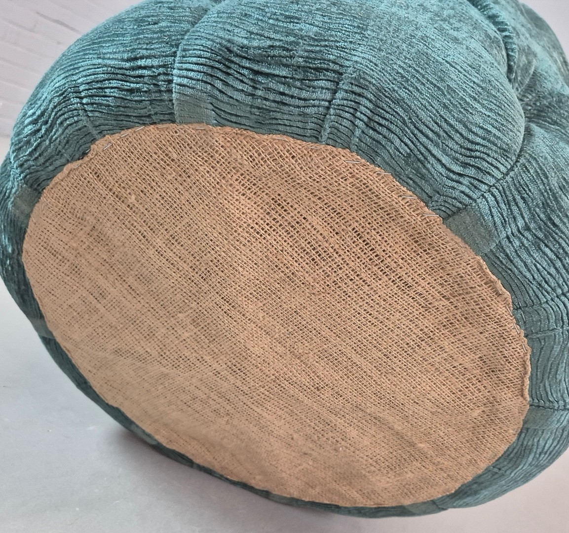 OTTOMAN. turquoise velvet 57cm w x 49cm t.