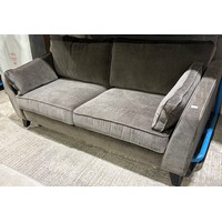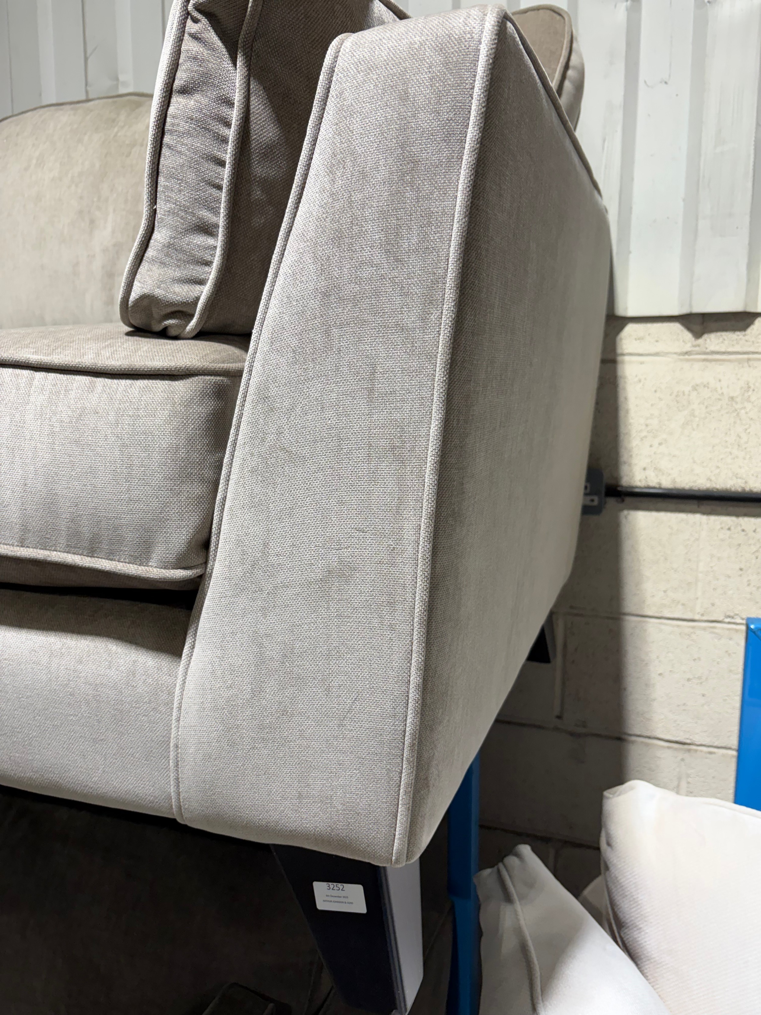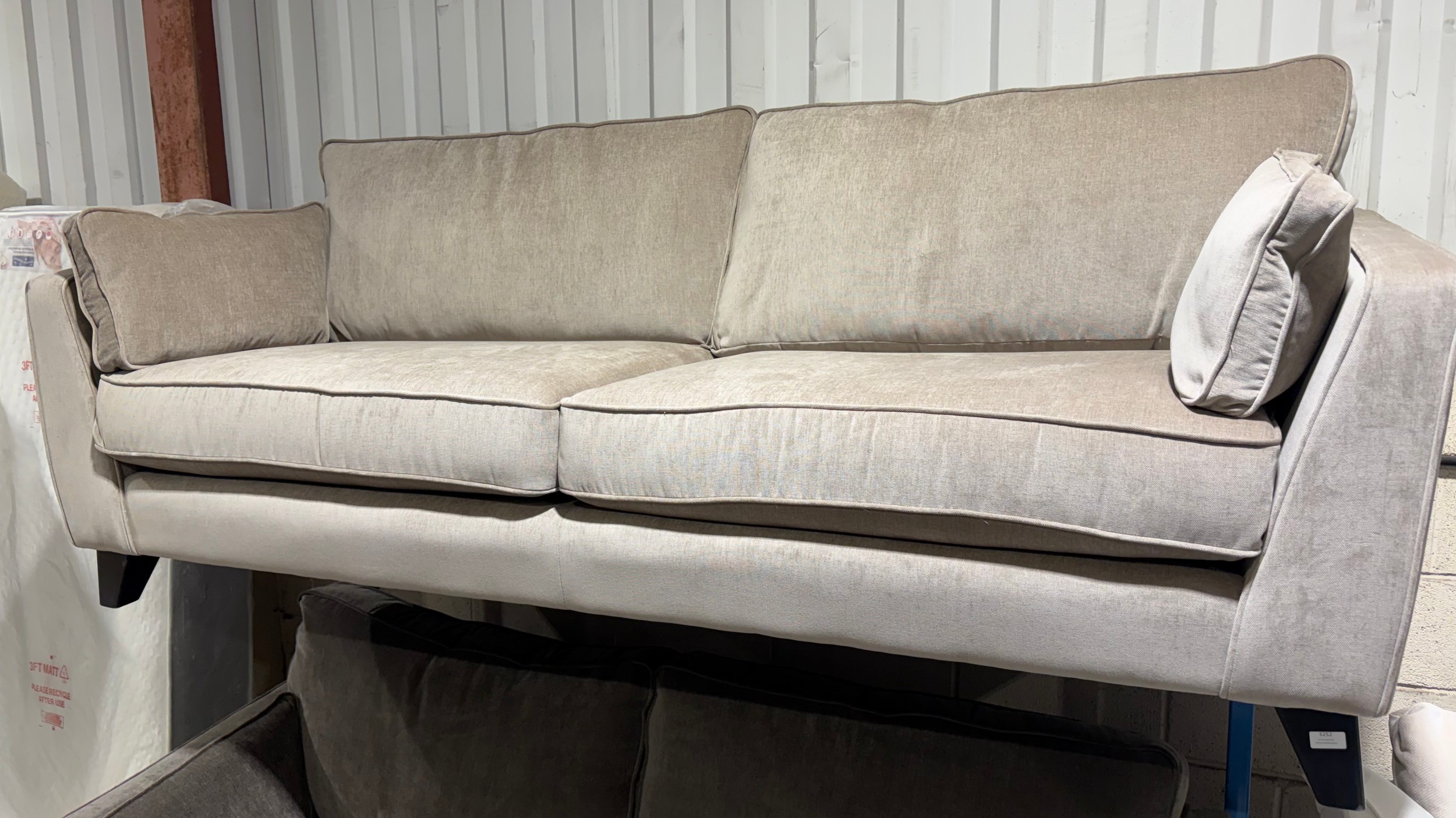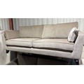 A taupe fabric upholstered 3 seater sofa
