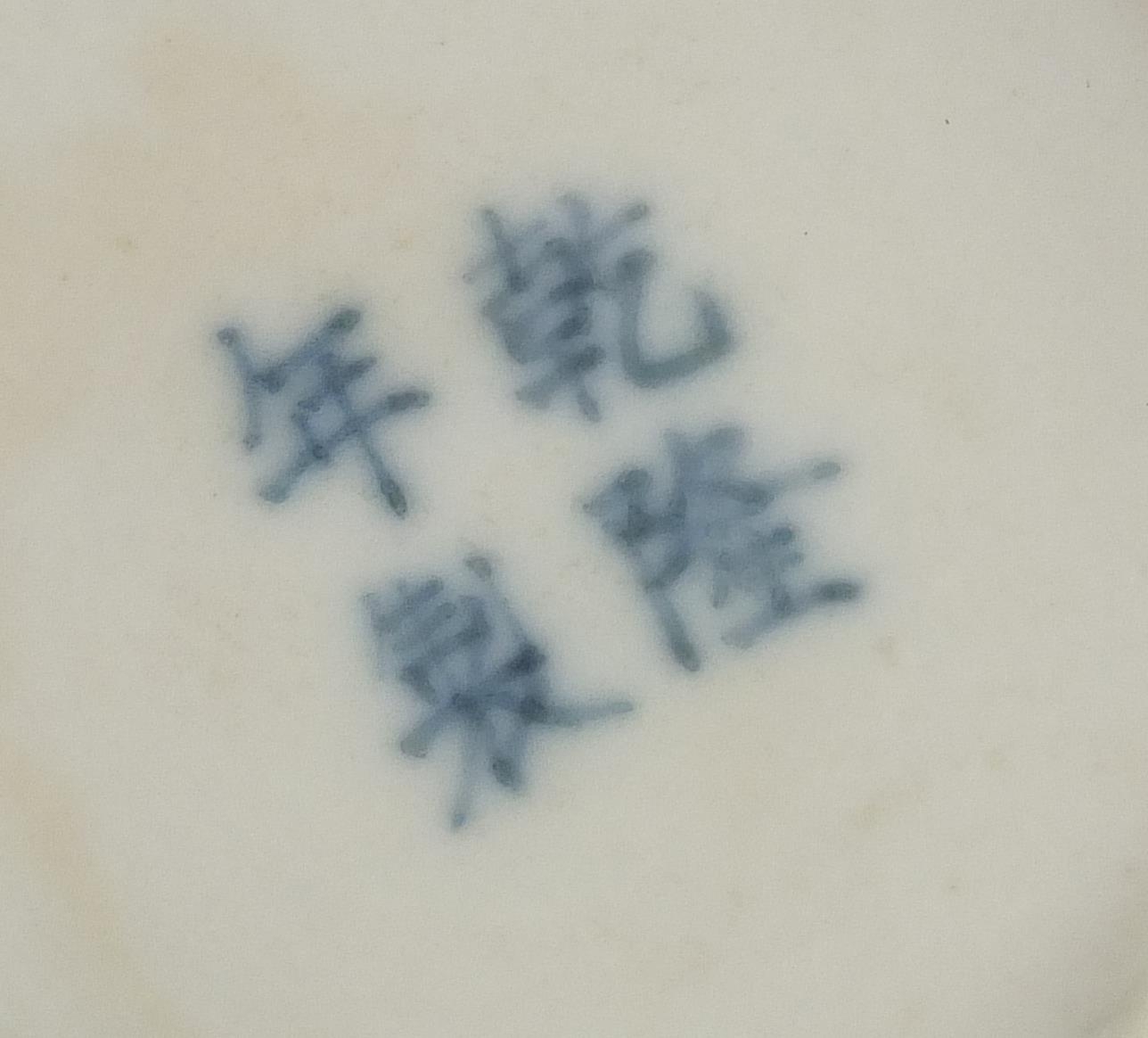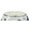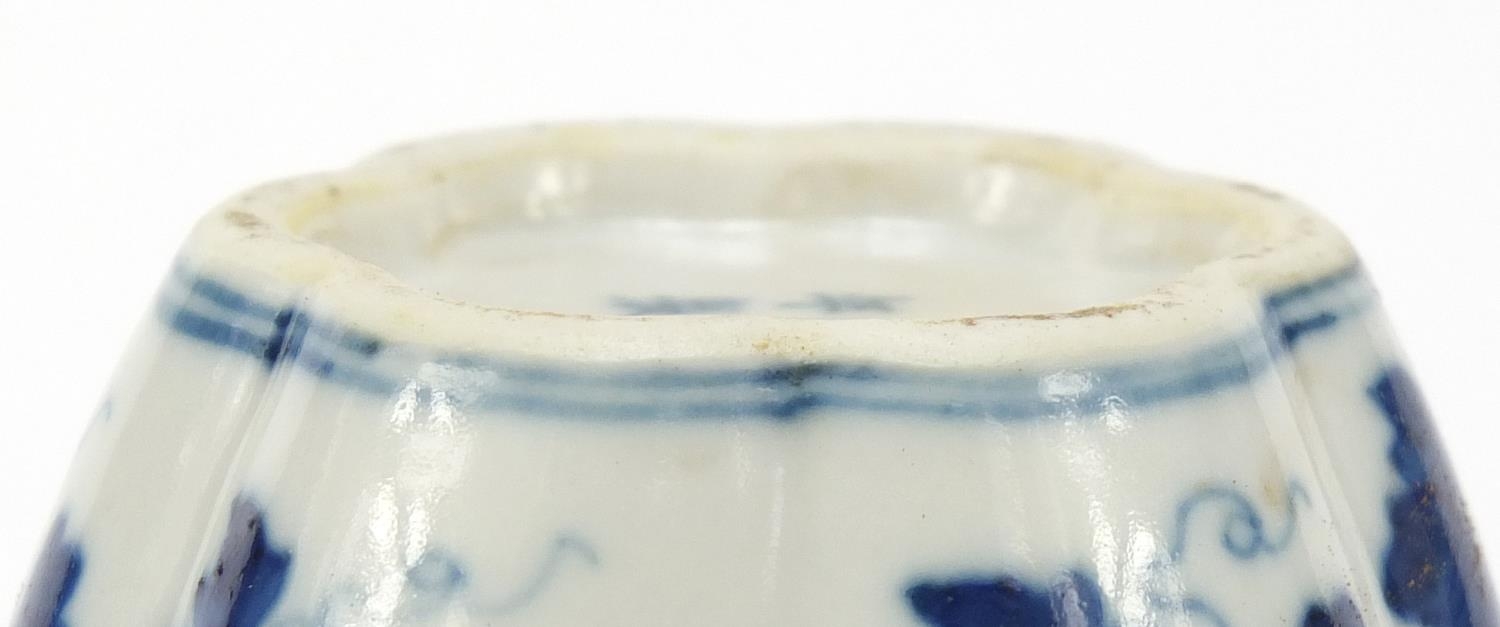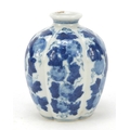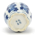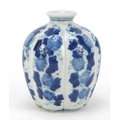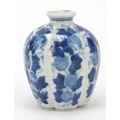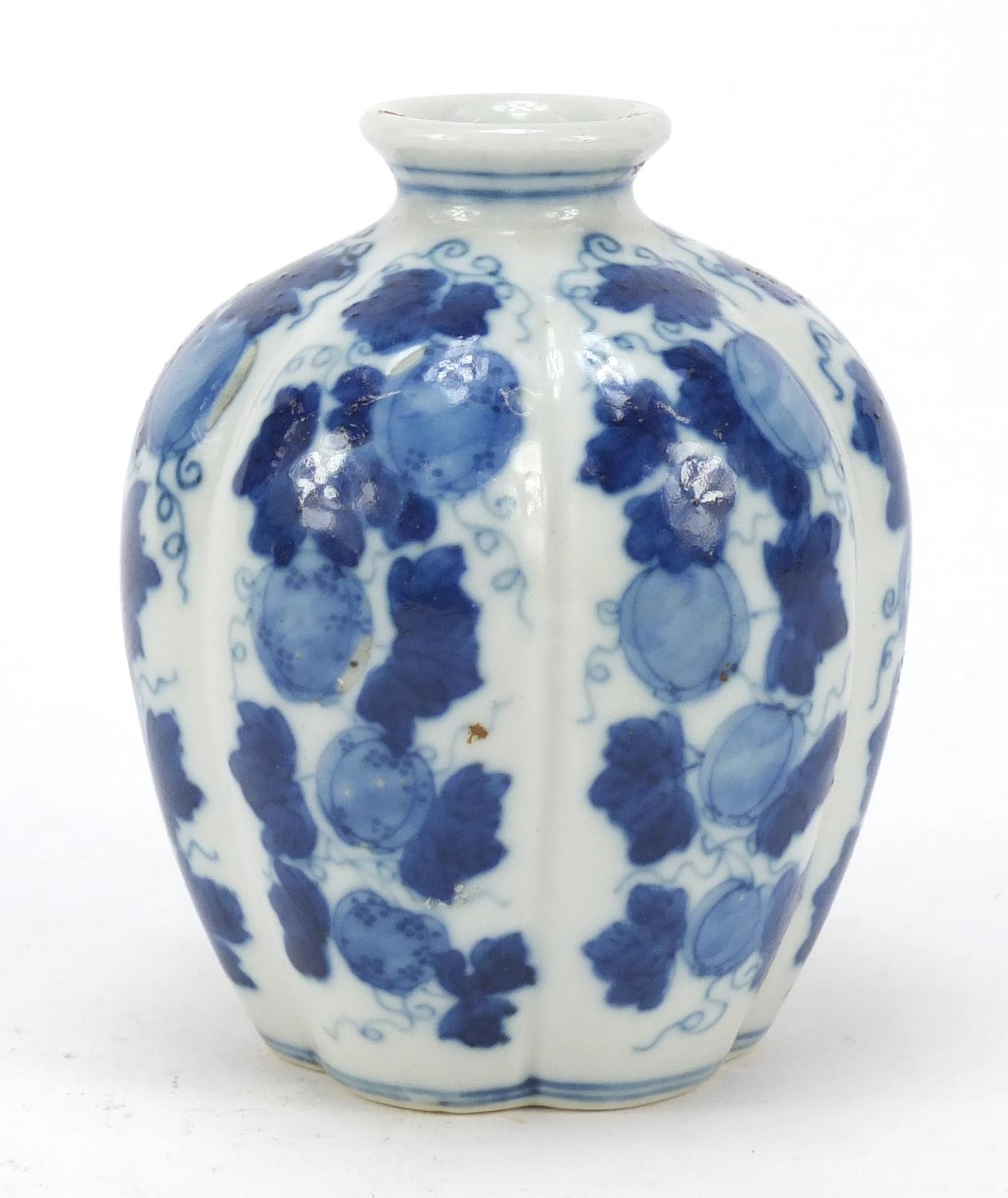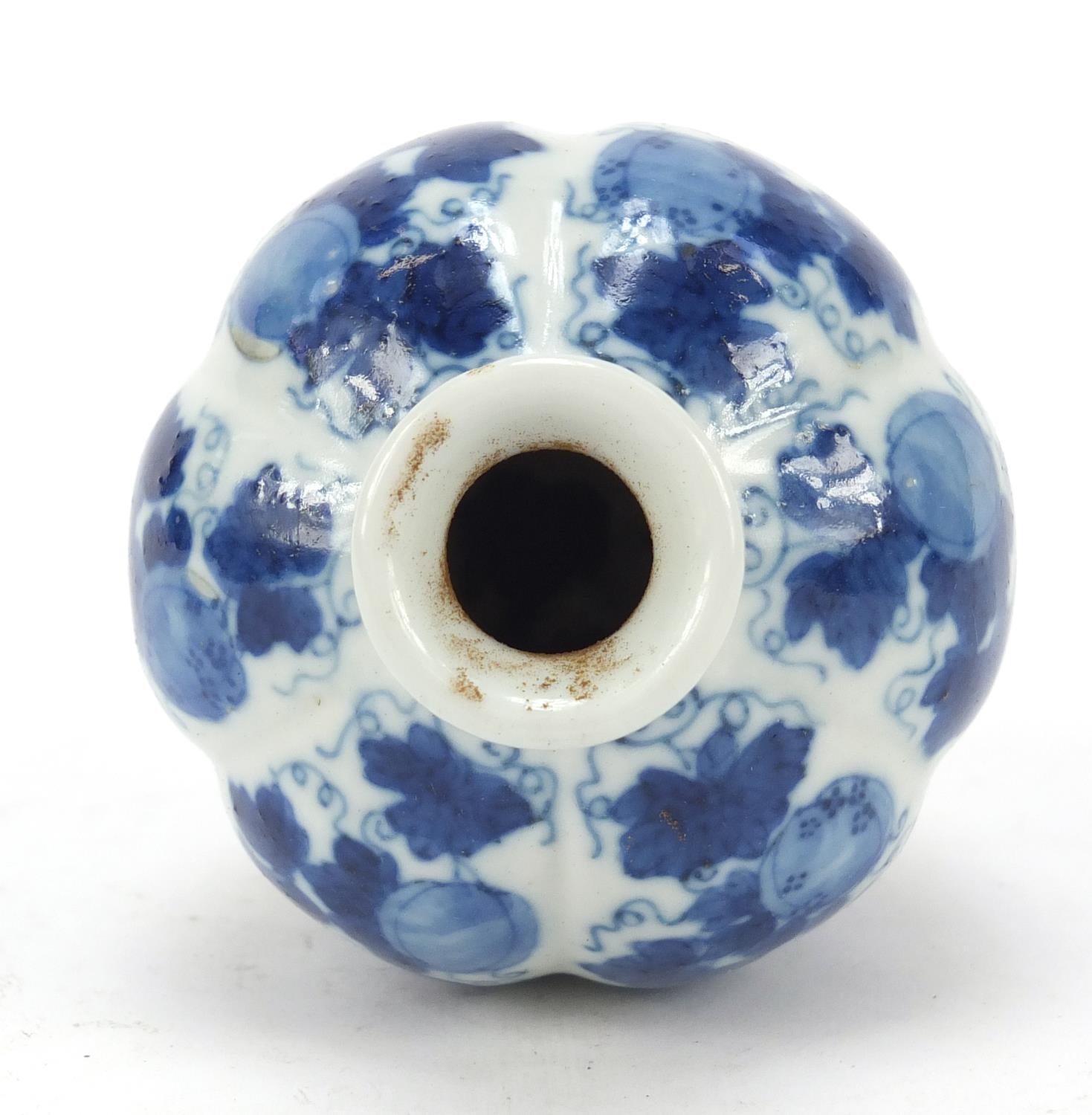 Chinese blue and white porcelain vase hand painted with fruit and leaves, four figure character marks to the base, 9cm high