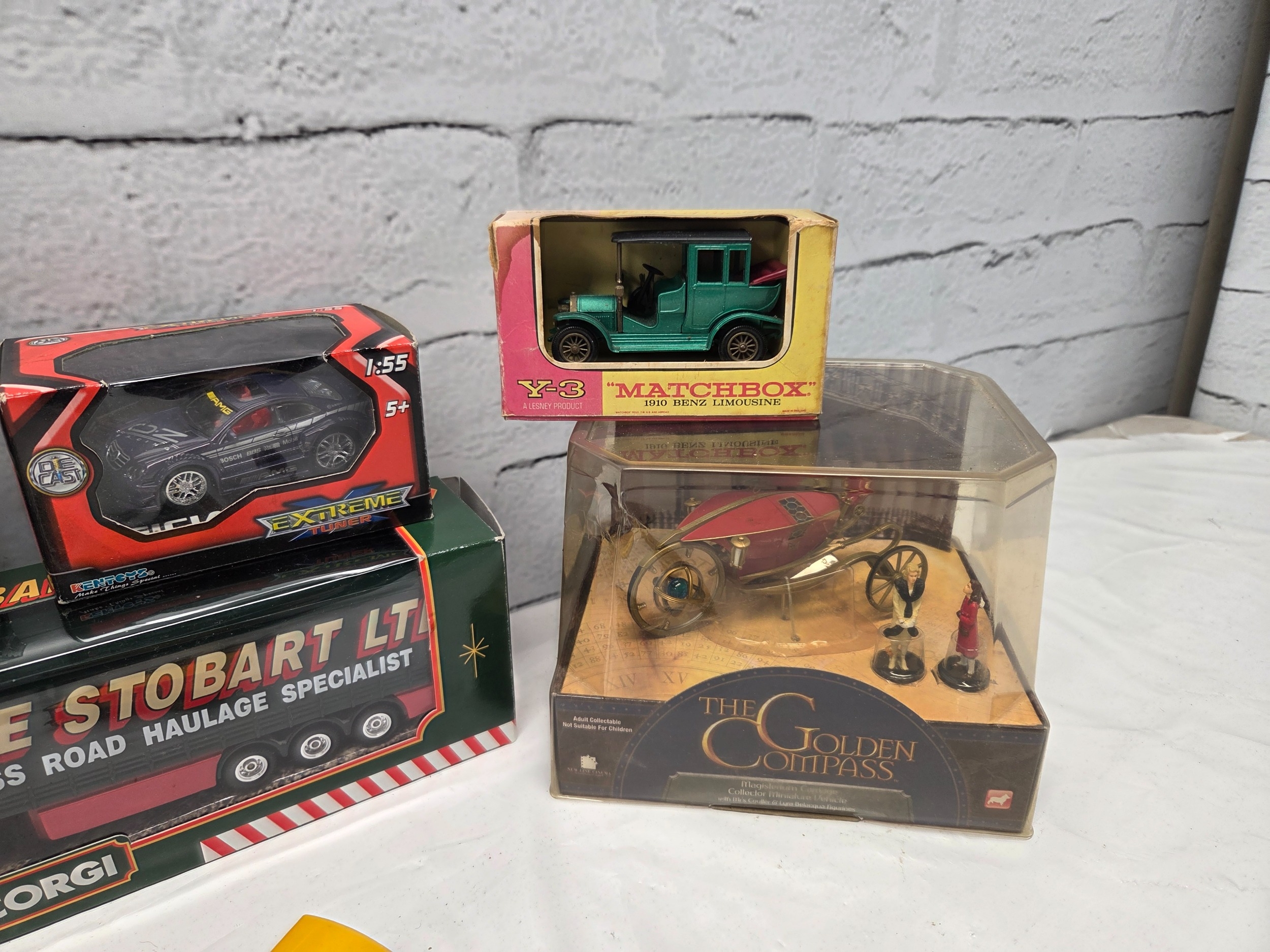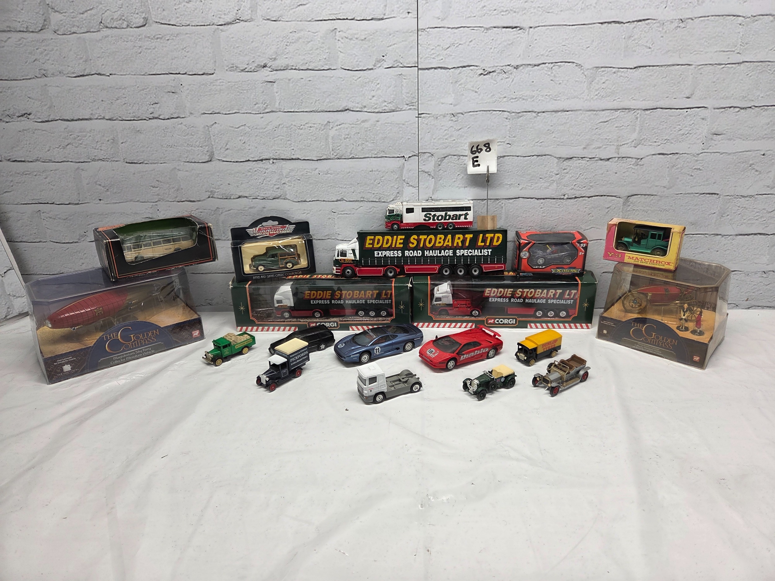 A mixed collection of Die-Cast Model Vehicles to include boxed Eddie Stobart articulated lorries, Matchbox vehicles and a Golden Compass display model. Some items boxed in original packaging