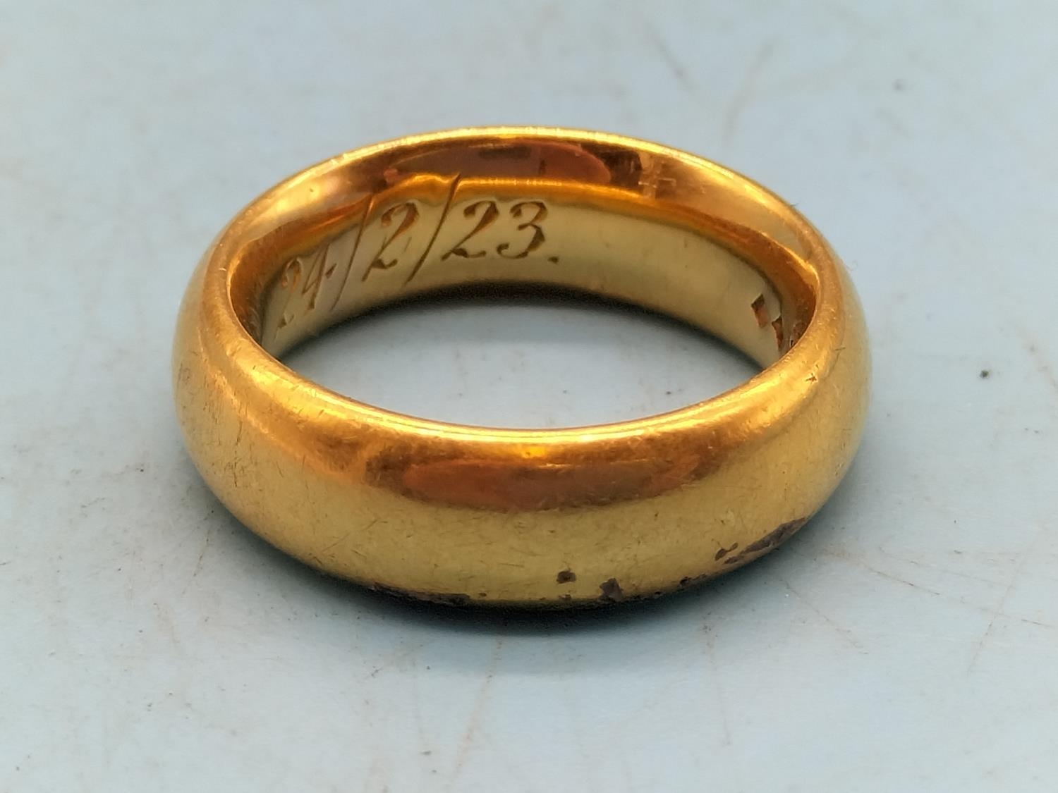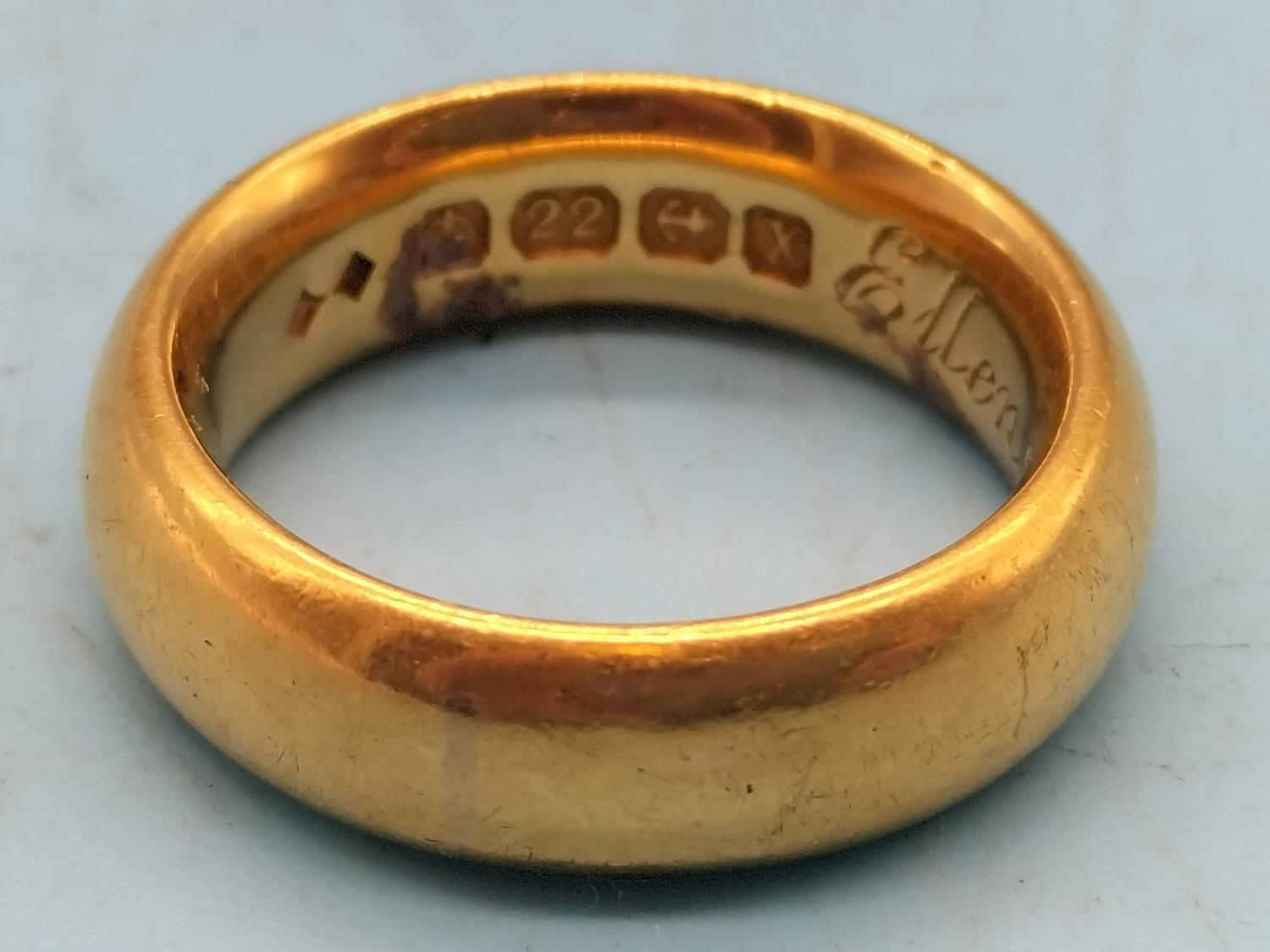 22ct Gold Band Ring. Size H. 10.9 Grams.