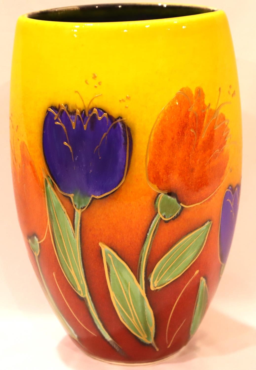 Anita Harris vase in the Tulip pattern, H: 19 cm. No cracks, chips or visible restoration. P&P Group 2 (£18+VAT for the first lot and £3+VAT for subsequent lots)