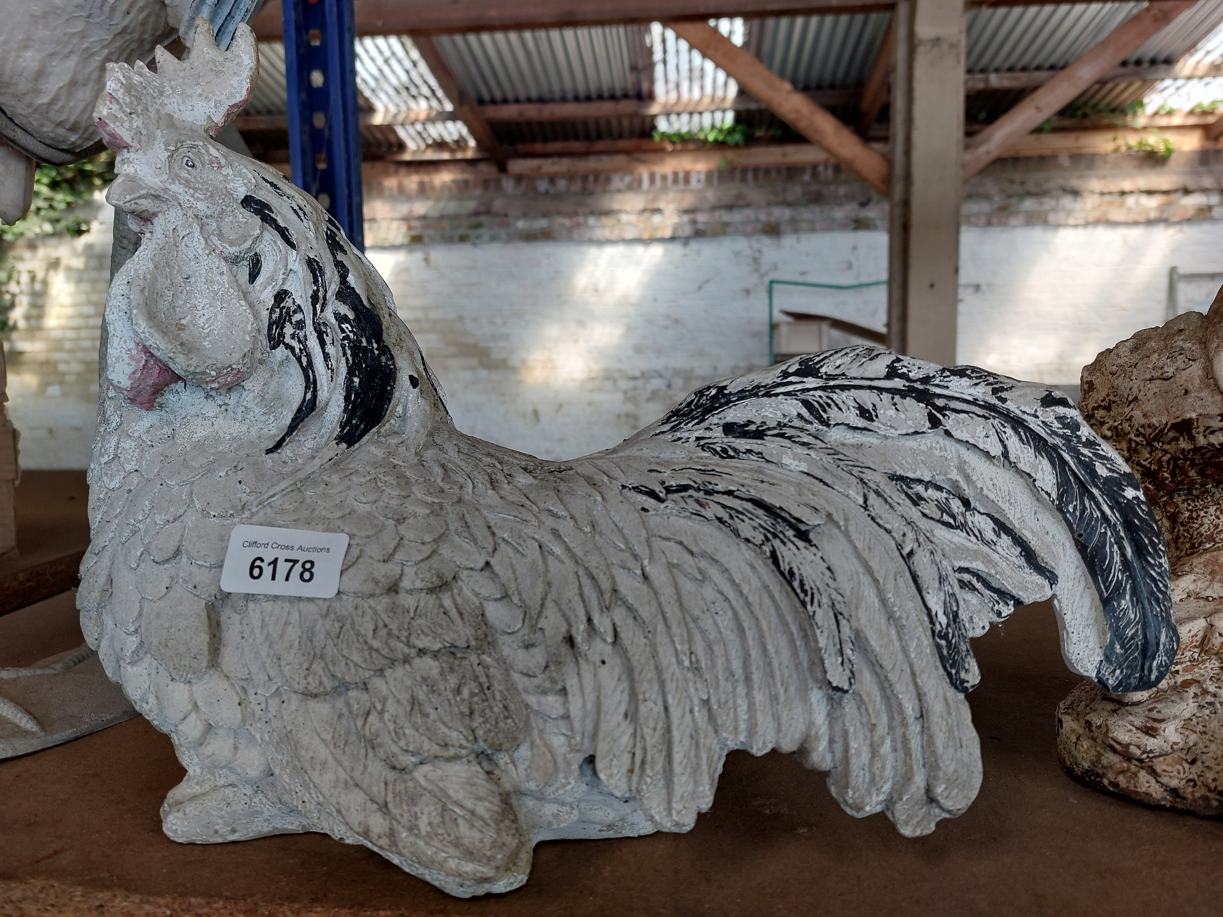A plastic garden ornament of a cockerel.