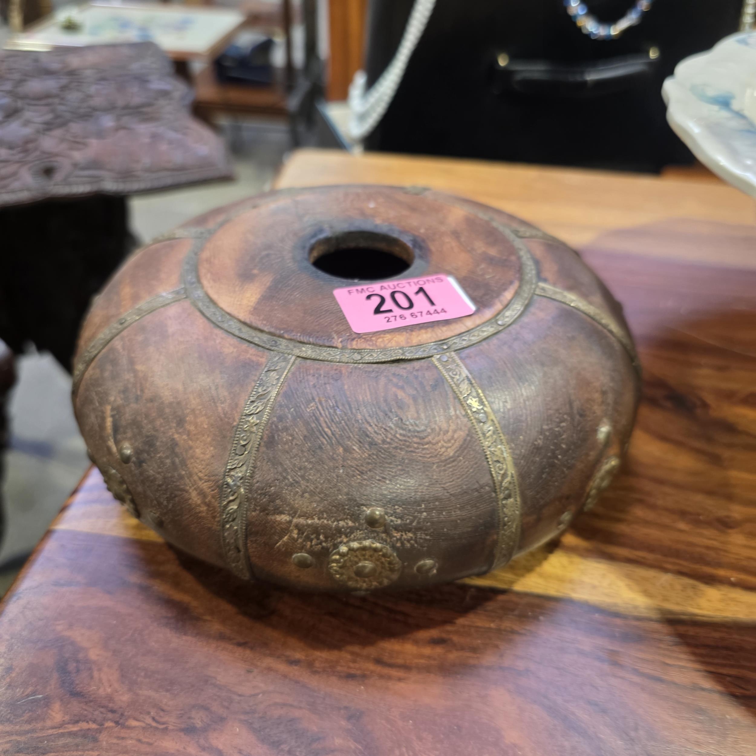 Rare Shellow Antique Wood & Brass Vessel Bowl