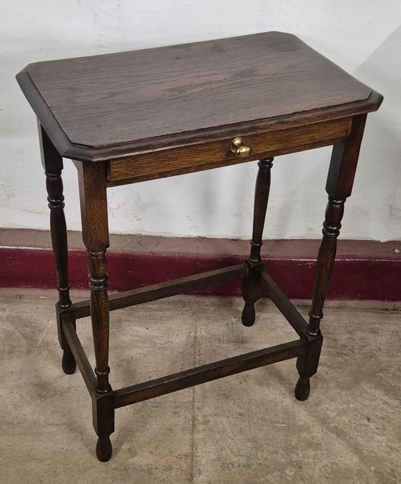 An oak single drawer side table