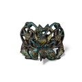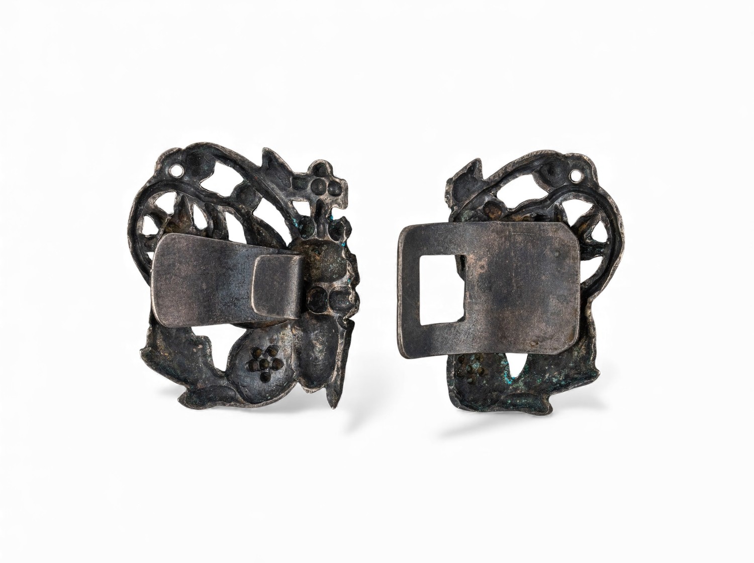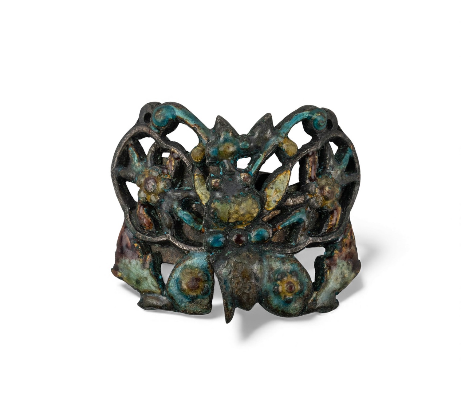 A silver metal and multicoloured enamel buckle