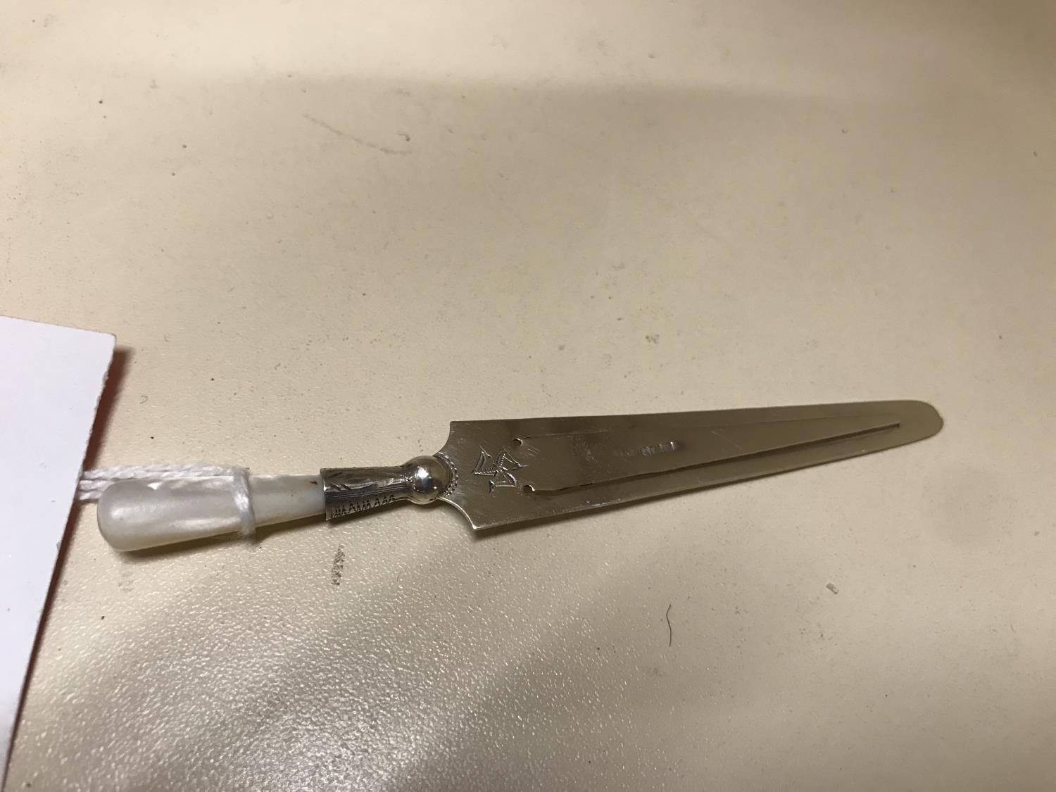 Hall Marked Silver & MOP handled bookmark, 3.5" length
