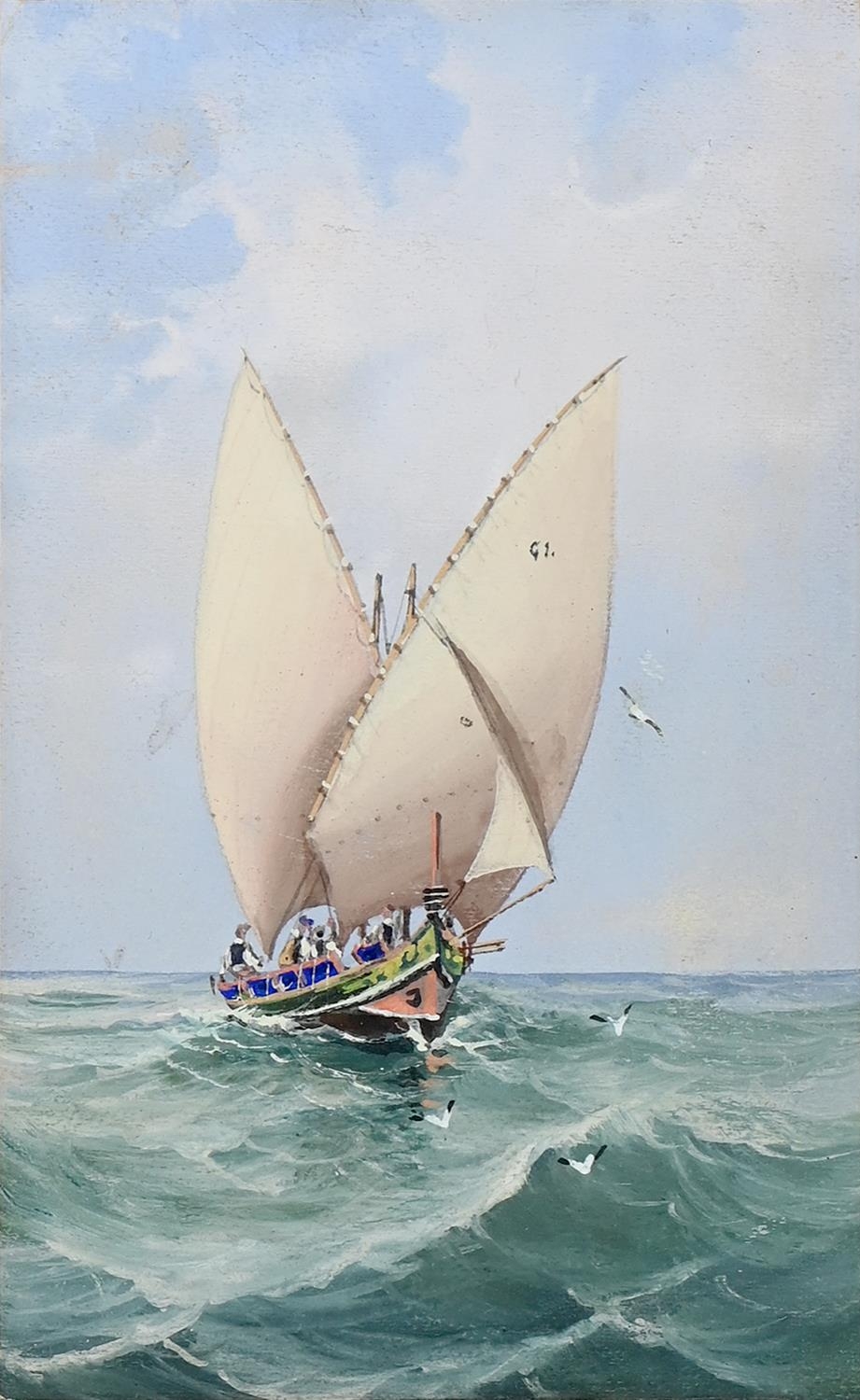 Joseph Bonello (b.1878) - Gozo Boat, Malta, artist's stamp verso, gouache, 15.5 x 9.5cm