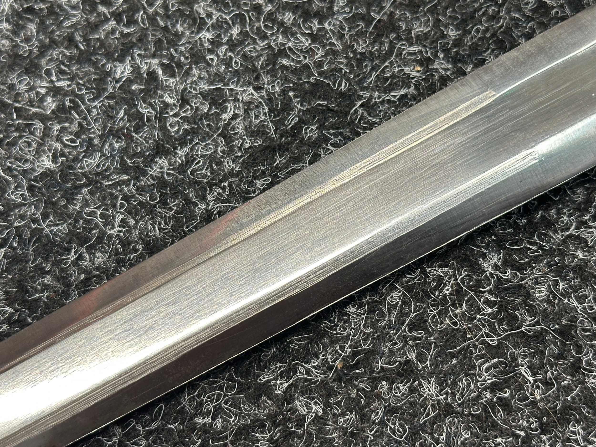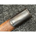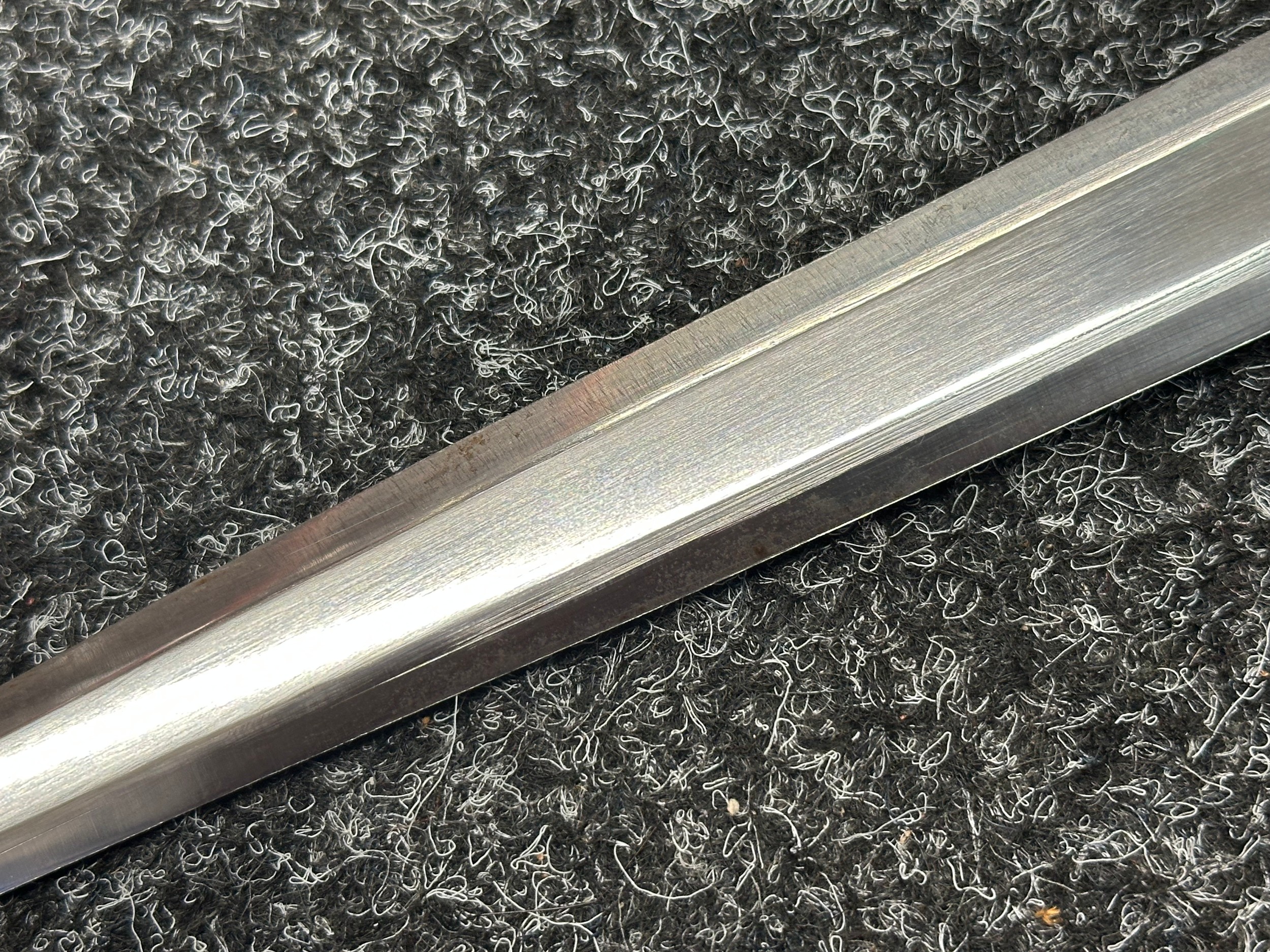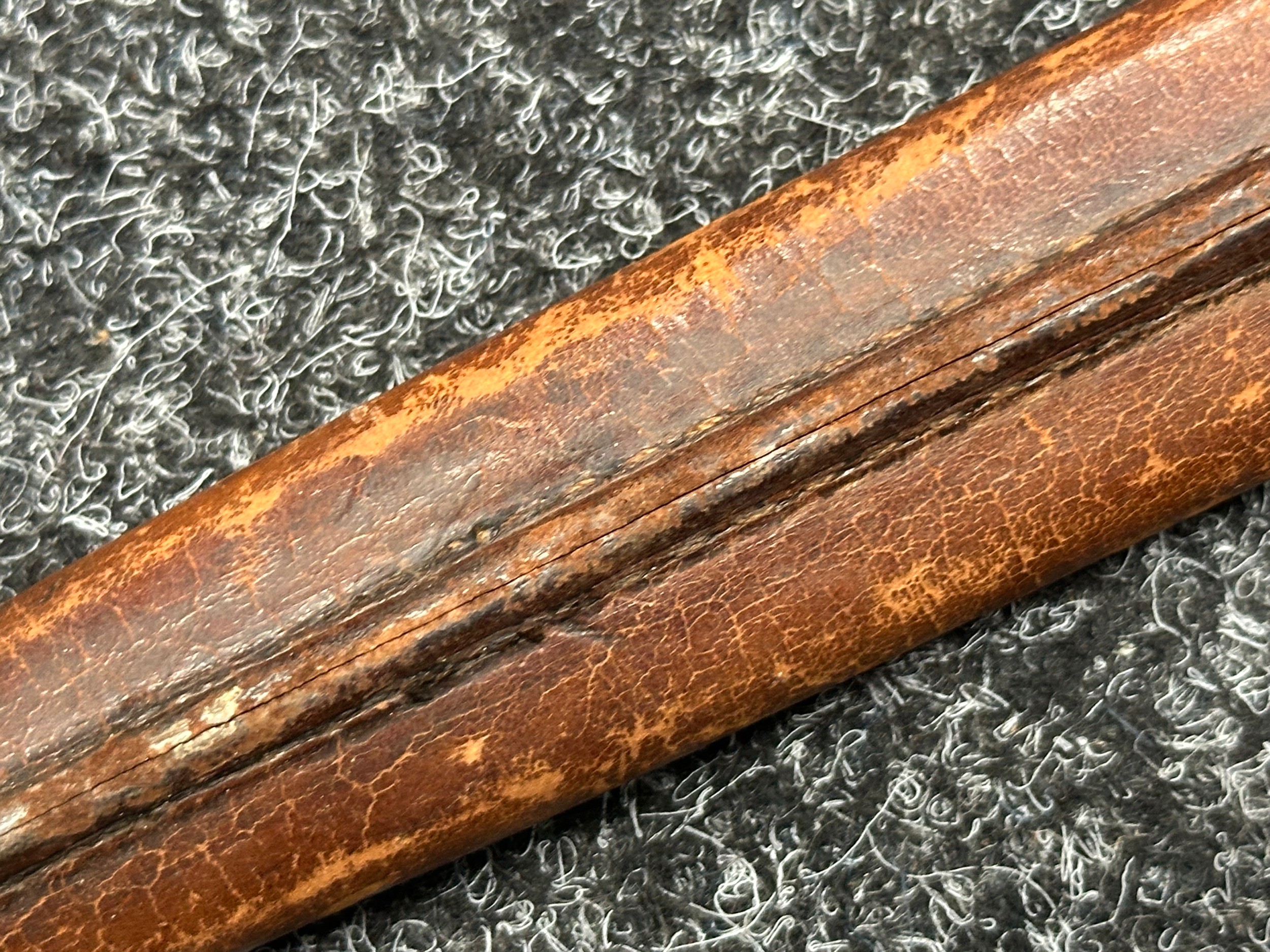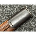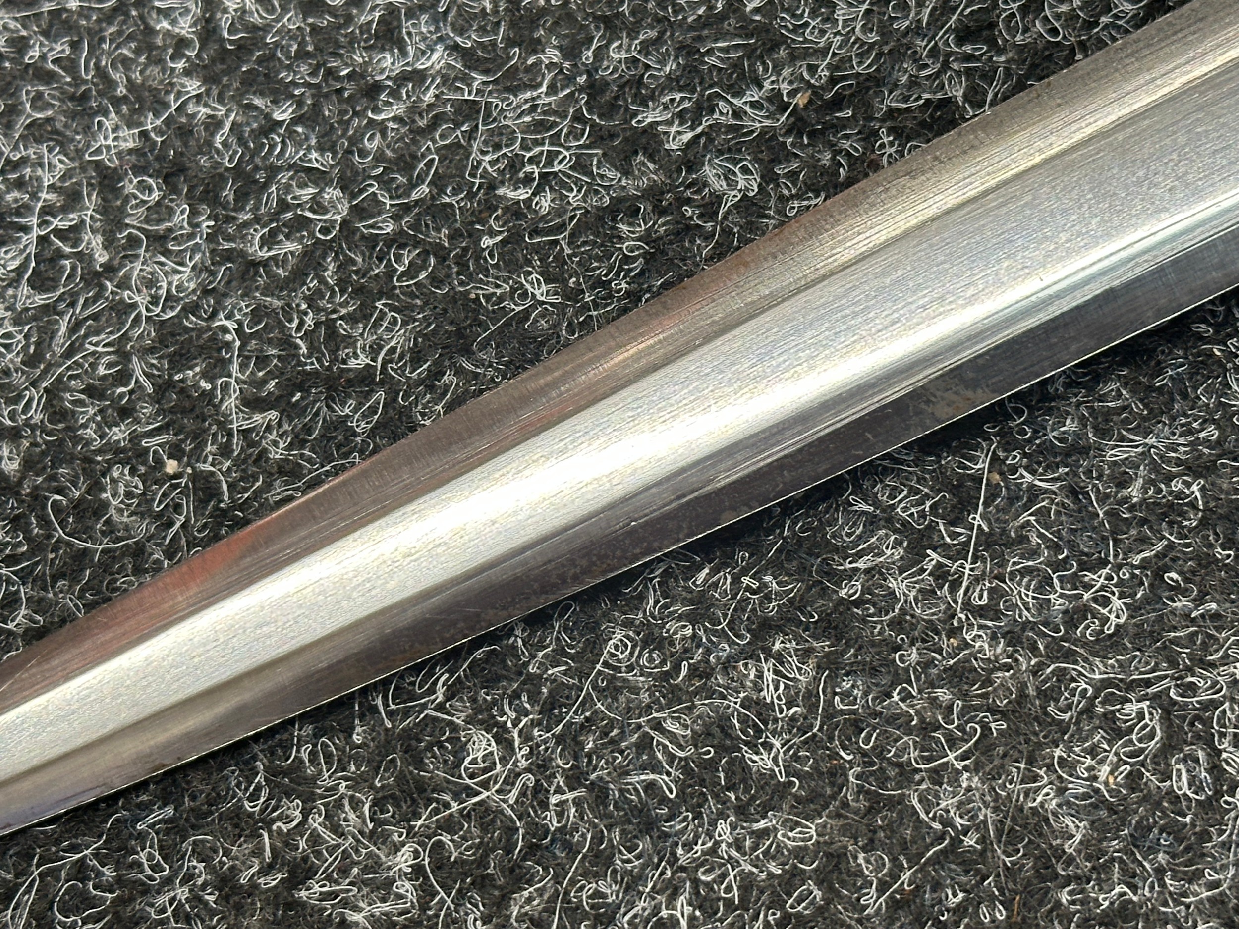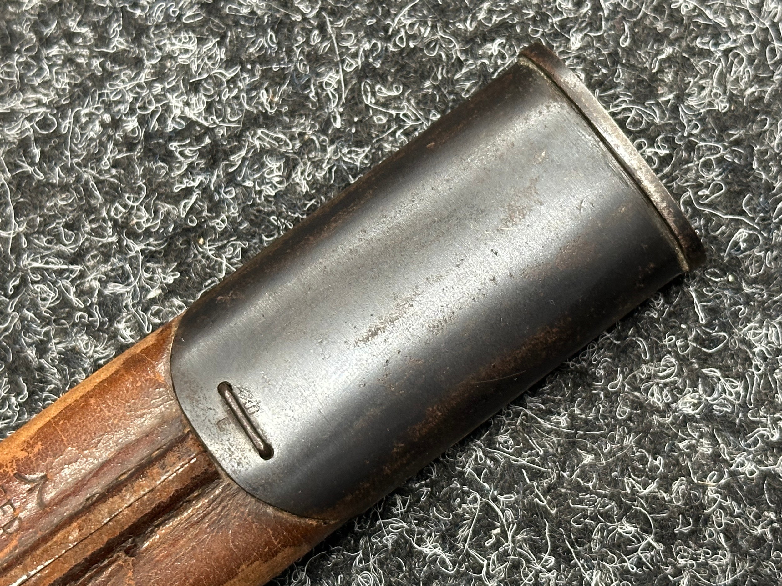 Rare British WW1 Robbins of Dudley Private Purchase Short Sword Fighting Knife. One of the rarest Robbins knives. Double edged blade 290mm in length. Cast alloy grip typical of all Robbins knives impressed with makers name "Robbins Dudley". Overall length 404mm. Complete with 1903 pattern leather scabbard.