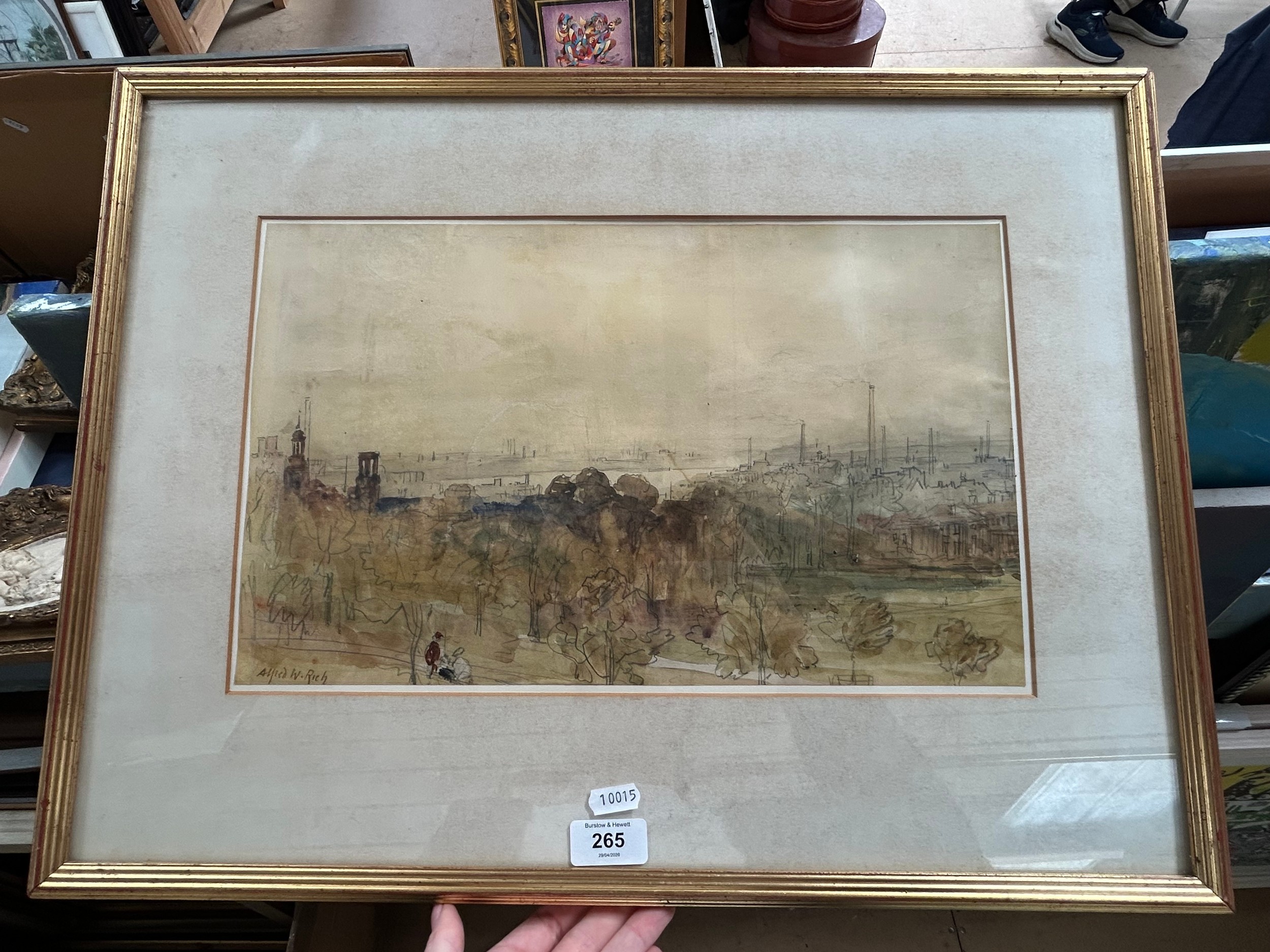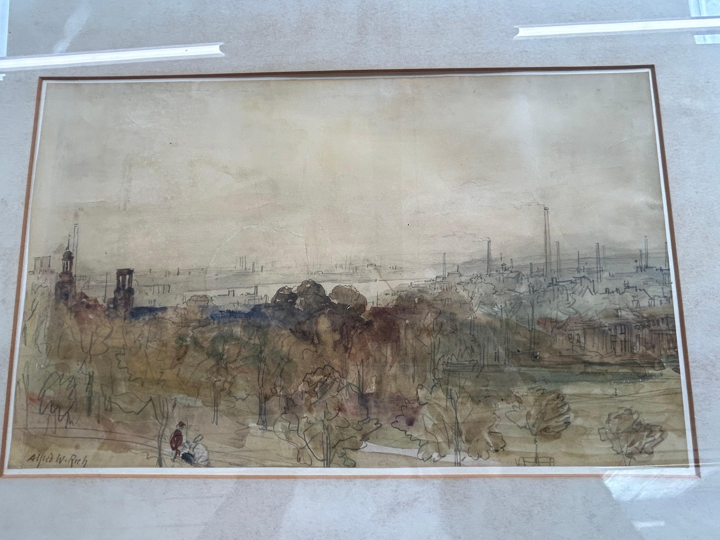 Alfred Rich, industrial landscape, watercolour, 25cm x 40cm, framed