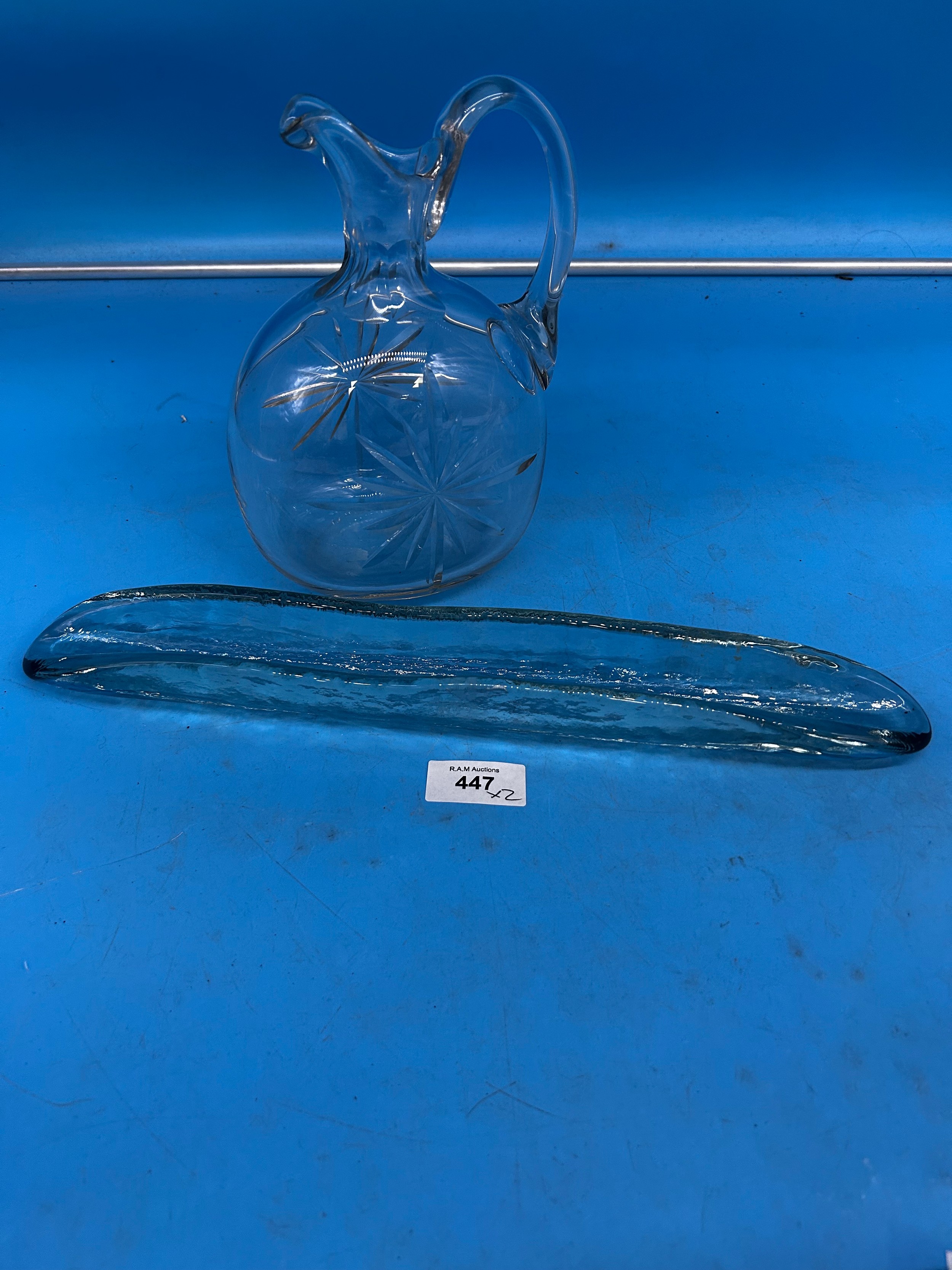 Glass Water/Wine Jug and a Murano Style Green Glass Dish